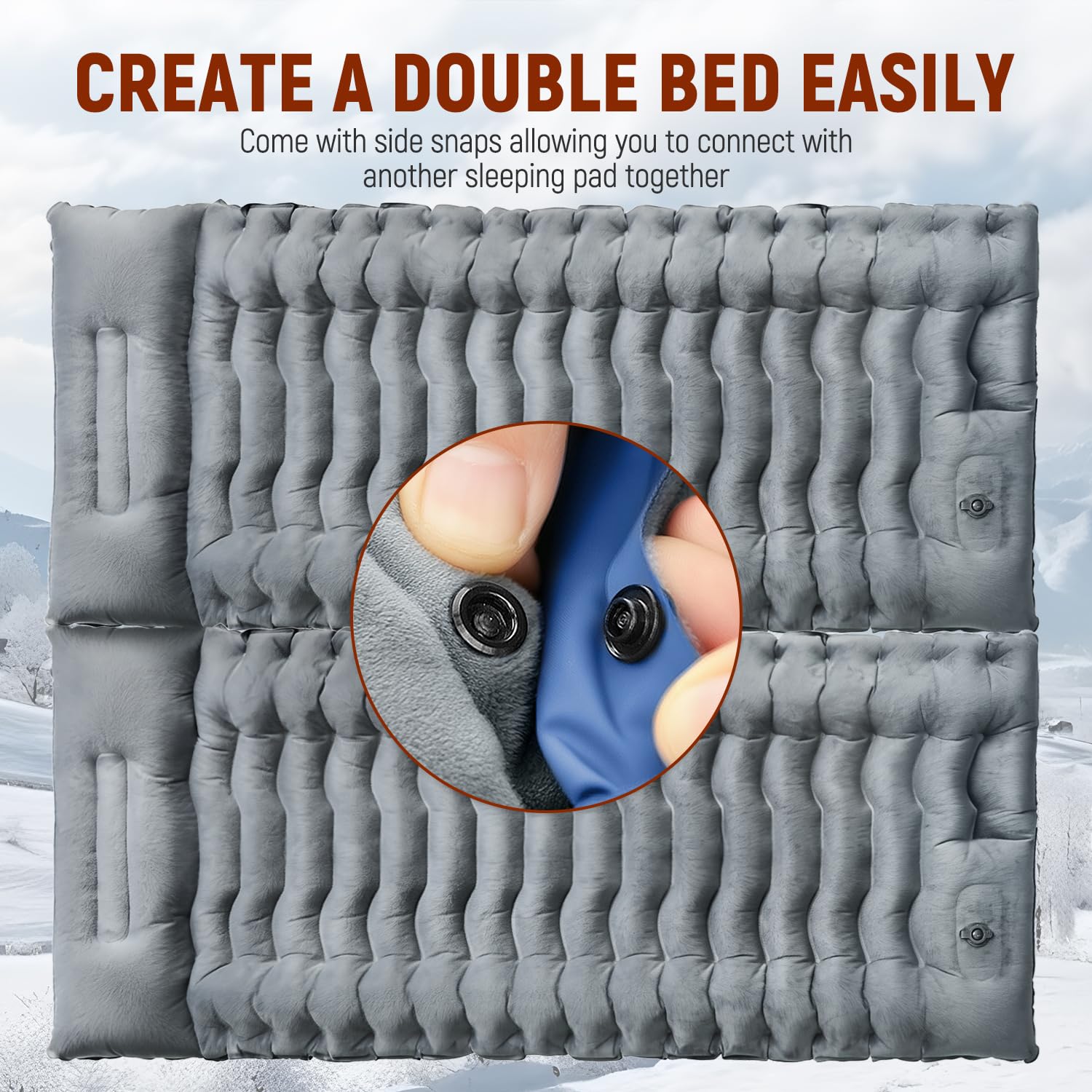 【Get One More for Twin Bed】 Our camping pads are equipped with buttons on the side, you can easily connect another one to create a double bed, making a wider space for more comfort sleeping. Perfect for you to go camping with your families and friends. Also, it comes in different colors on each side, more fashionable than others.