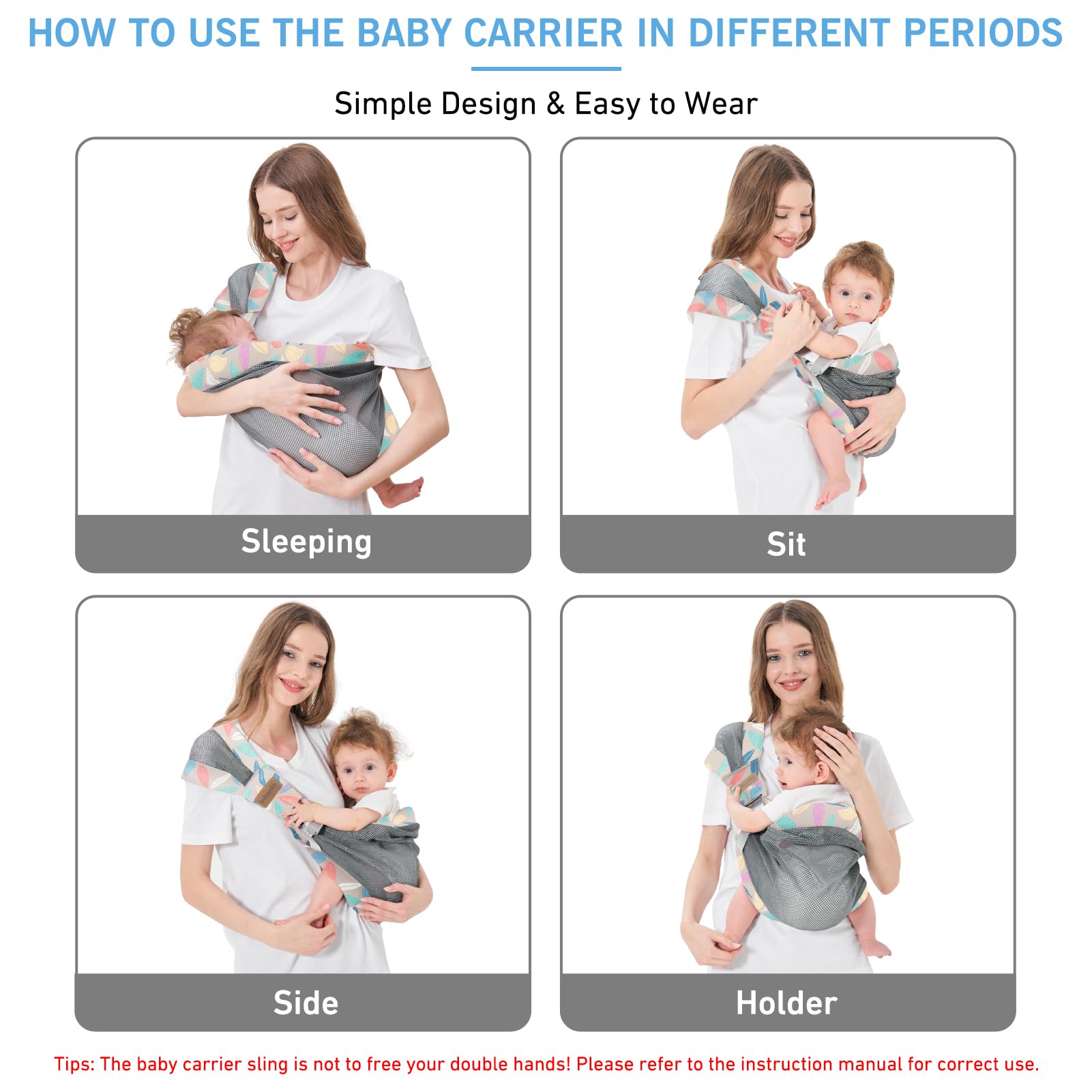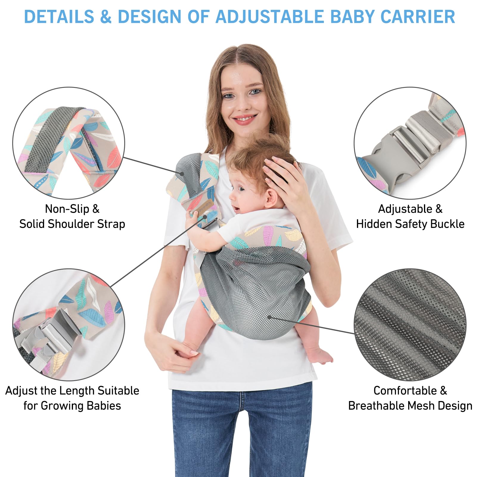 Adjustable Baby Carrier - Baby Essentials: Baby carrier, a baby accessories that design with several adjustable buckles, which is suitable for newborn to toddler baby aged 3-36 months. As a baby wraps carrier that is newborn essentials must haves, you can adjust the length of baby carrier according to your own needs and the baby's growth period to ensure that you and your baby girl and baby boy have a safe and comfortable state when you are using the newborn baby essentials of baby wrap. Noted: Please hold the baby' back with one hand