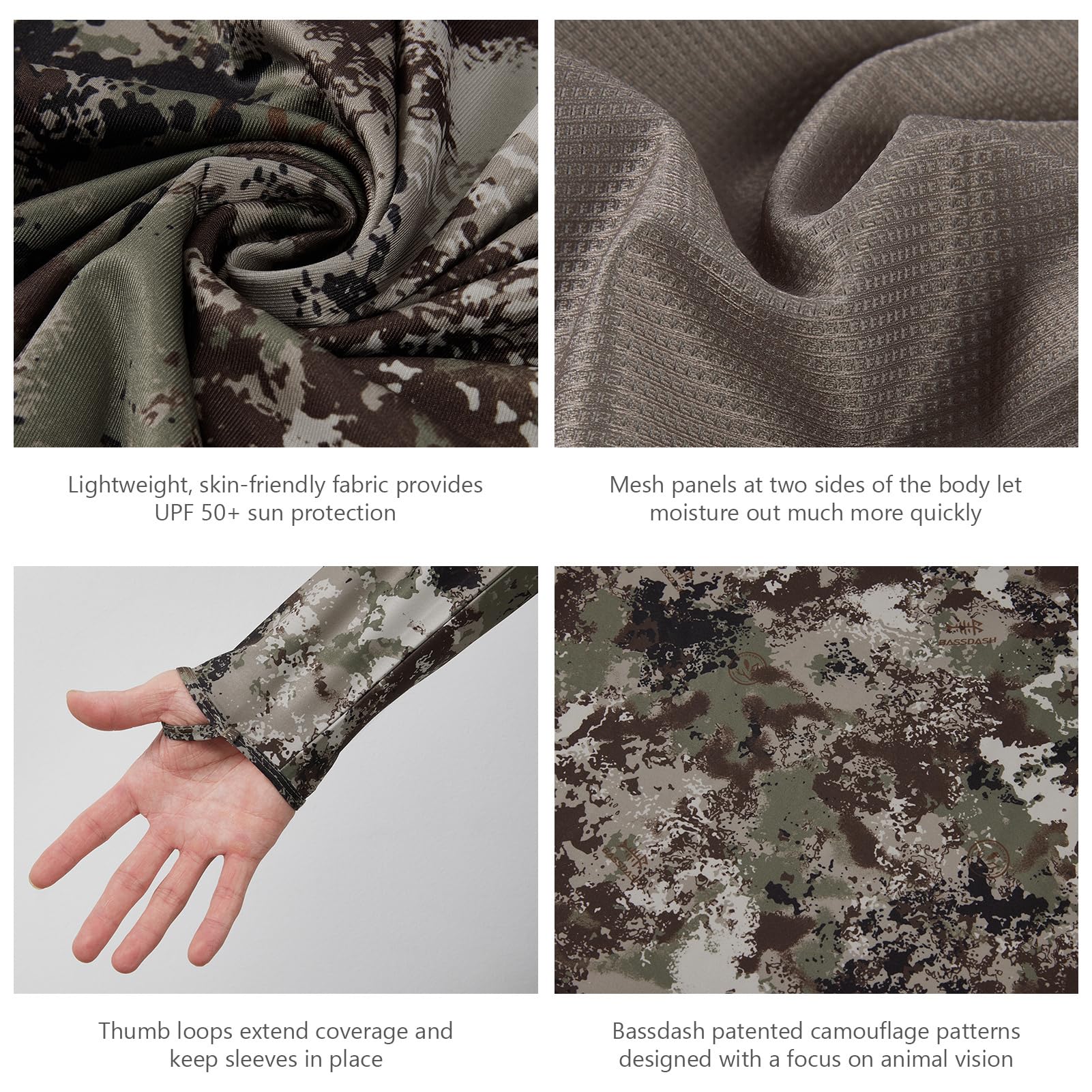 Description BASSDSASH Men's UPF 50+ Lightweight Hunting Camo Hoodie Quick Dry Performance Long Sleeve Fishing Shirt with Hood FS30M
