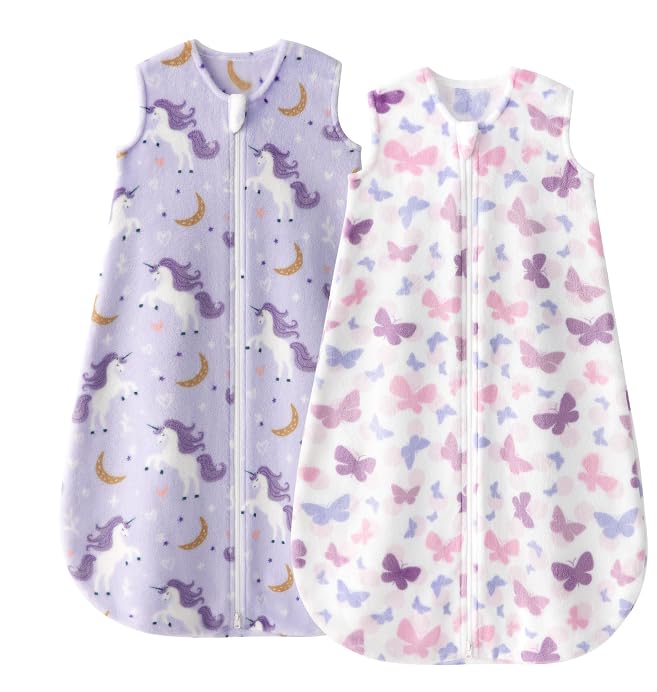 Warm Tips - Fleece baby Wearable Blanket come with 2 pack and machine washable. There are 4 sizes available for your choices: S(0-6 Months/10-18lb), M (6-12 Months/16-24lb), L(12-18 Months/22-18lb), XL(18-24 Months/26-34lbs). Please refer to our size chart carefully before you order sleep sack.
