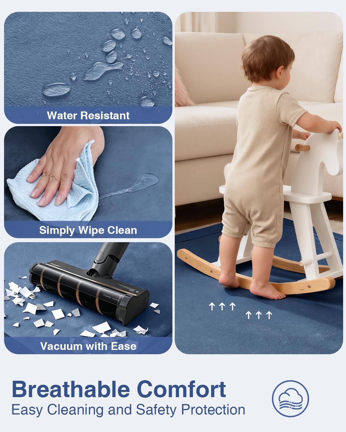 Versatile for Any Play Space:Ideal as a floor mat for baby in the nursery, living room, or grandparents' house. From infant crawling to toddler play, this baby play mat supports every stage. For cleaning, gently wipe clean the surface or use a vacuum with a soft brush attachment.