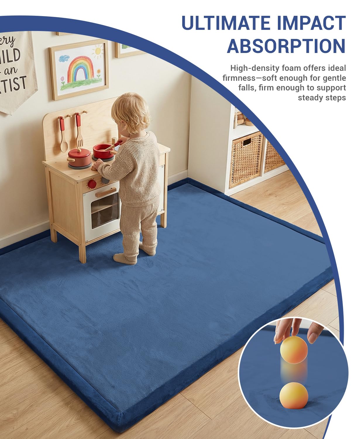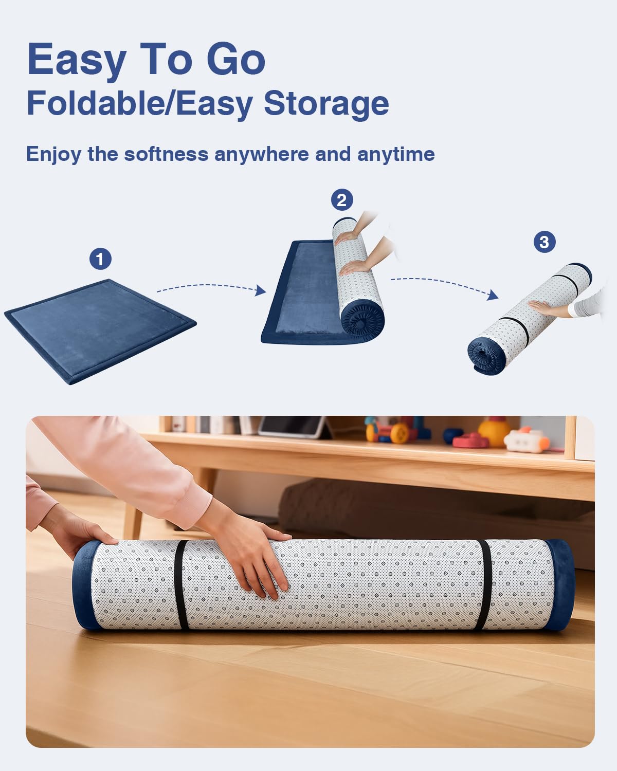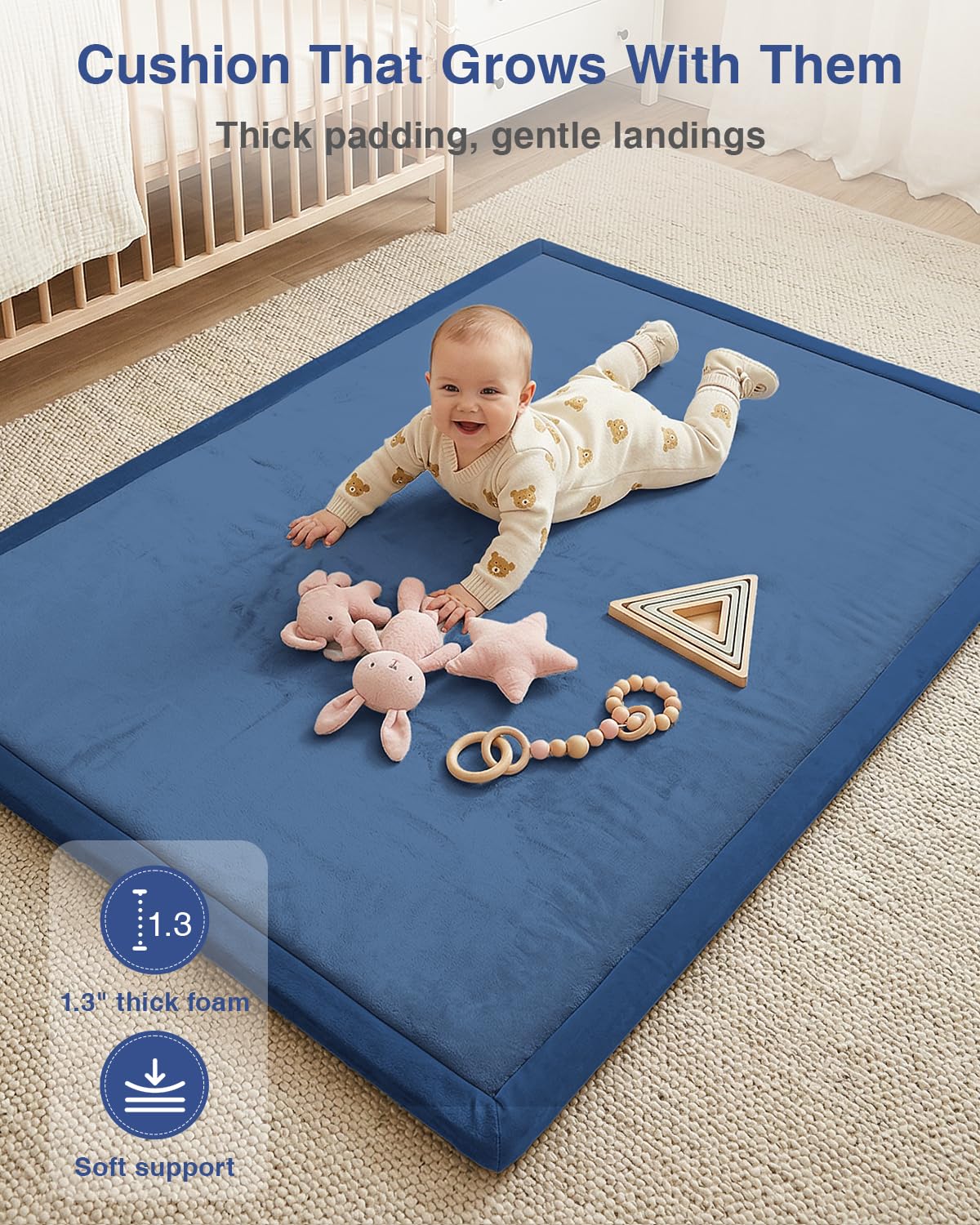 Extra Soft Plush Surface:Crafted with cozy flannel fabric and premium 1.3" thick high-density foam, this baby play mat offers a supportive, comfortable space for newborn tummy time and babies 6-12 months to crawl, sit, and kids toddler play safely. The ultra-soft surface makes it the perfect baby mat for floor activities.