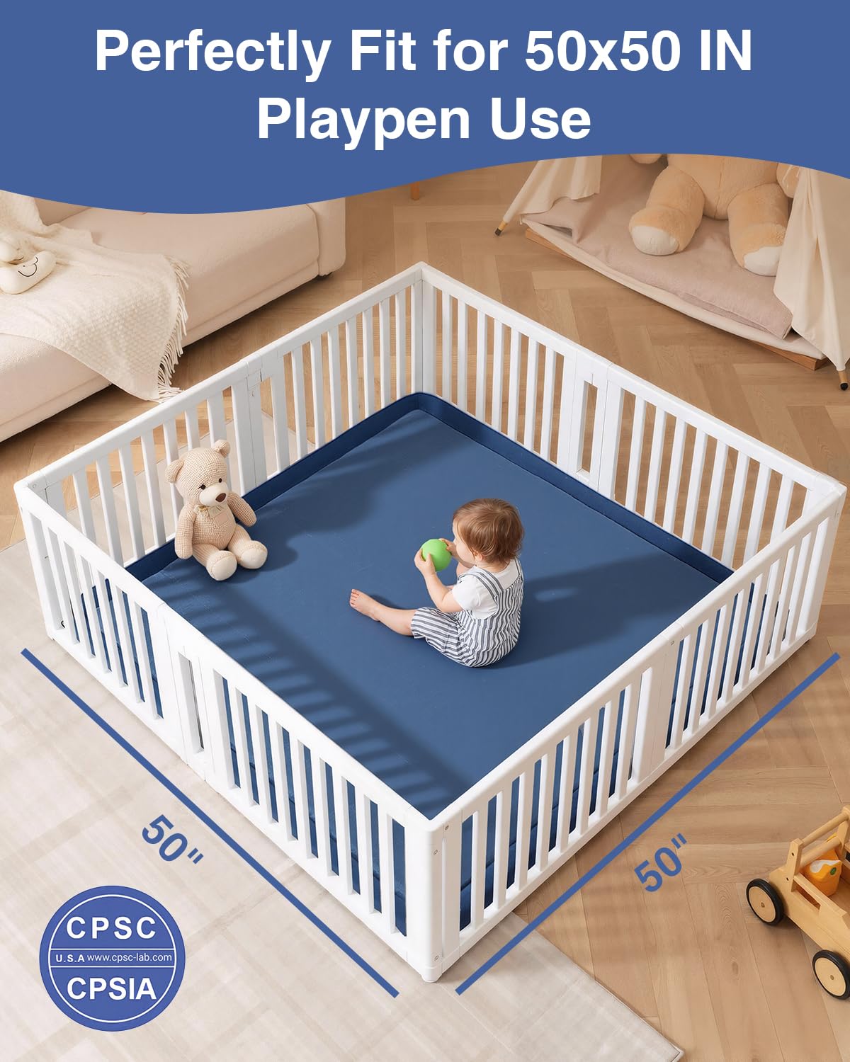 Firm & Secure Non-Slip Base:Featuring a grippy bottom layer, this foam play mat stays firmly in place on hard floors and tiles, preventing slips during active movement. It also fits securely as a 50x50 playpen mat, ensuring a stable surface for your little one's explorations.