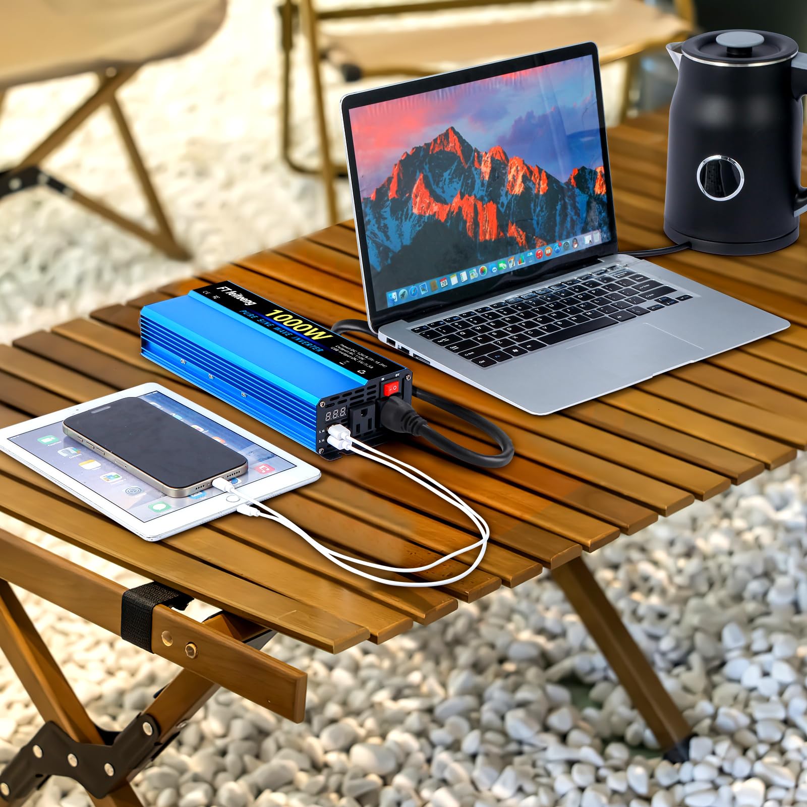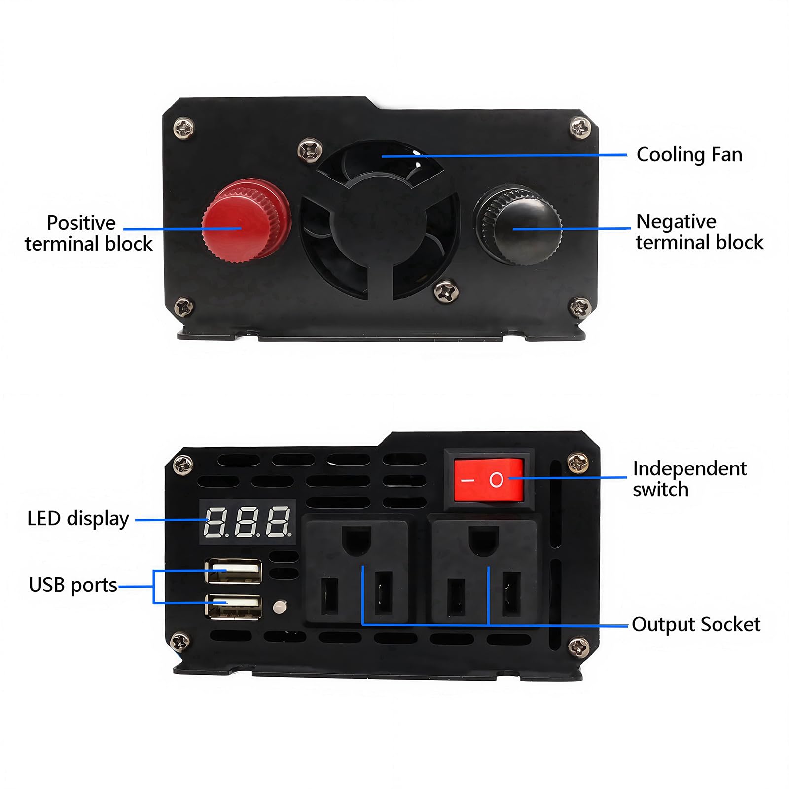 POWER INVERTER: This inverter has a built-in intelligent cooling fan to stabilize the stability at 45°, and the body is made of rugged aerospace aluminum alloy shell, which can withstand harsh environments and impacts
