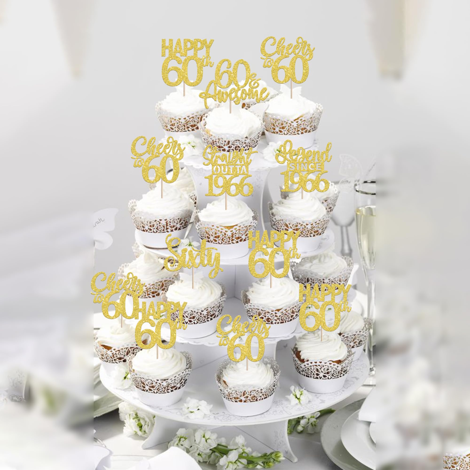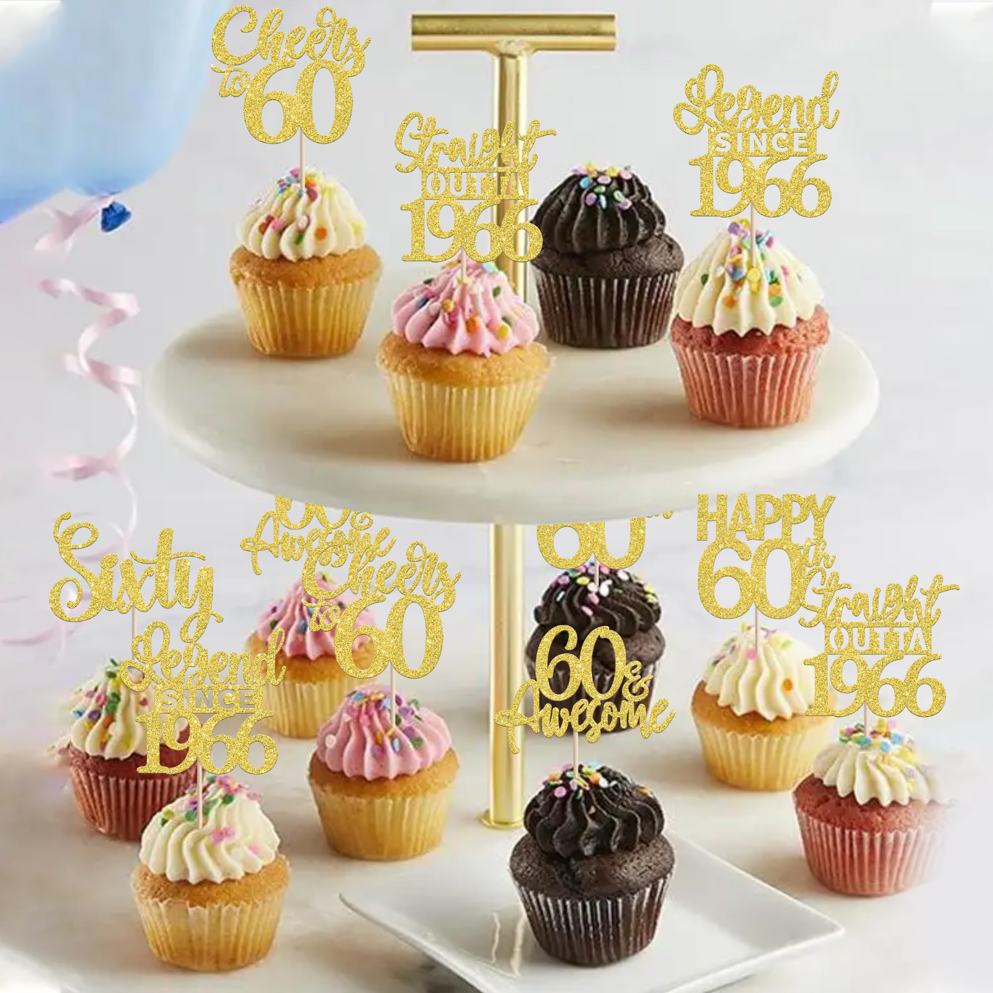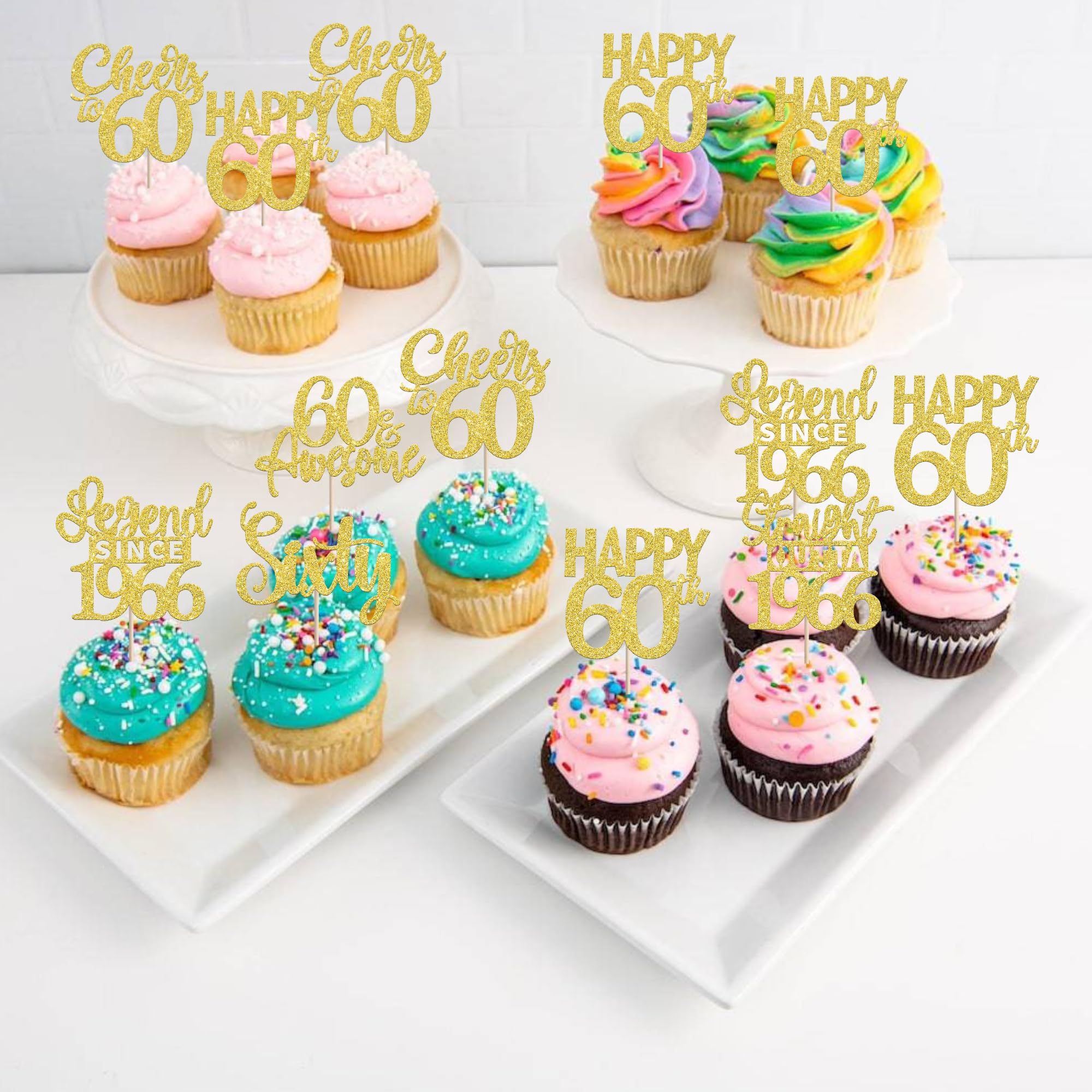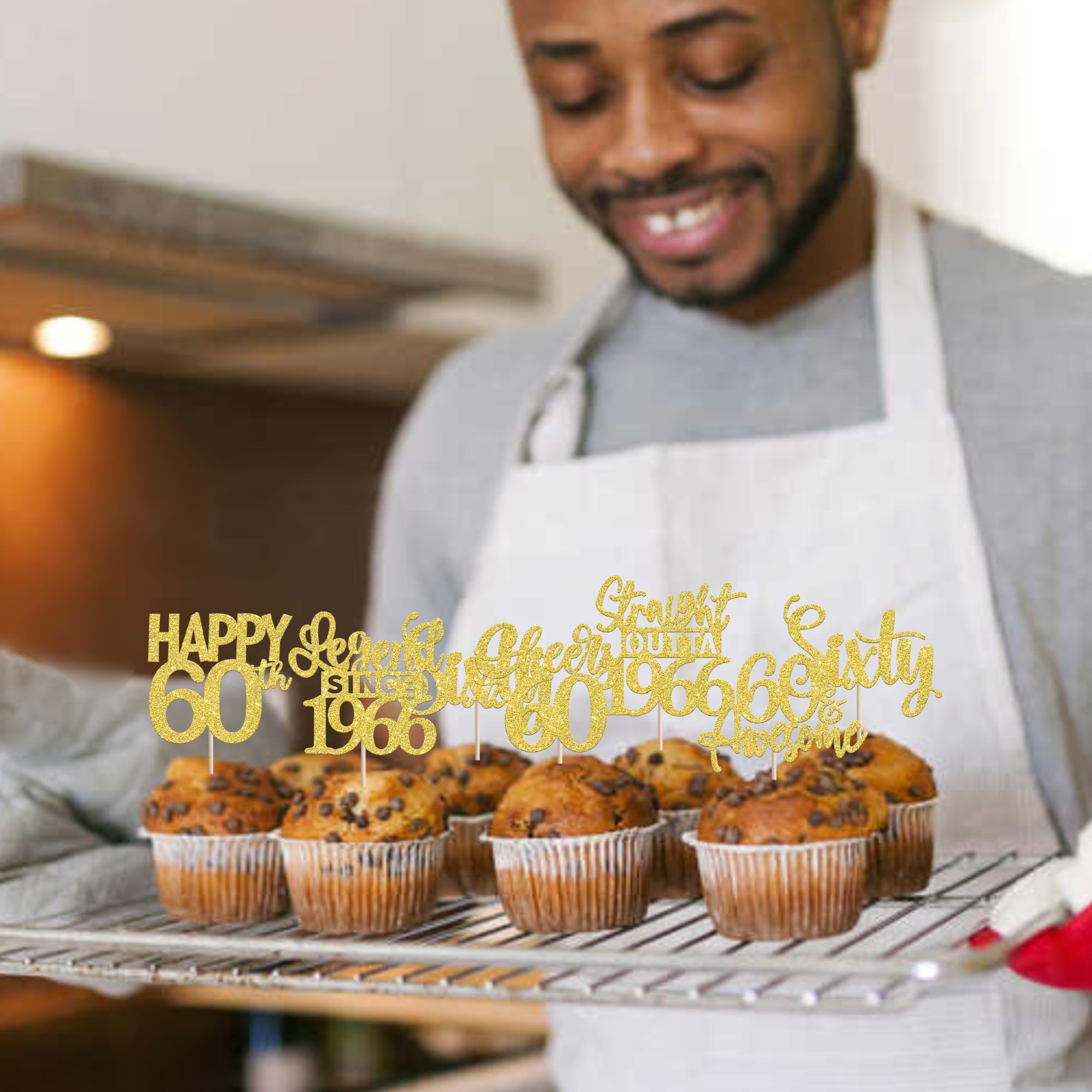 24PCS Happy 60th Birthday Cupcake Toppers Sixty Straight Outta 1966 Cupcake Picks Cheers to 60 Birthday Decorations Lengend Since 1966 Cupcake Decorations for 60th Birthday Anniversary Party Cake Decorations Supplies Perfect for legend since 1966 theme party, 60th anniversary theme party,cheers to 60 years theme party, 60 awesome theme party cupcake decorations supplies. Pack of 24 pcs,4 pcs of each design. The size is 2.3*4.5/ 2.4*4.5/ 2.7*4.5/ 2.4*4.7/ 2.6*3.9/ 2.4*4.7 inch ( with stick ) Made of high quality paper card stock,thick and sturdy. These straight outta 1966 cupcake toppers are one side glitter, another side is white, and they are intended for decoration only, please do not put them in oven or microwave. If the item you received has any defects, please contact us immediately.we will deal with it within 24 hours.