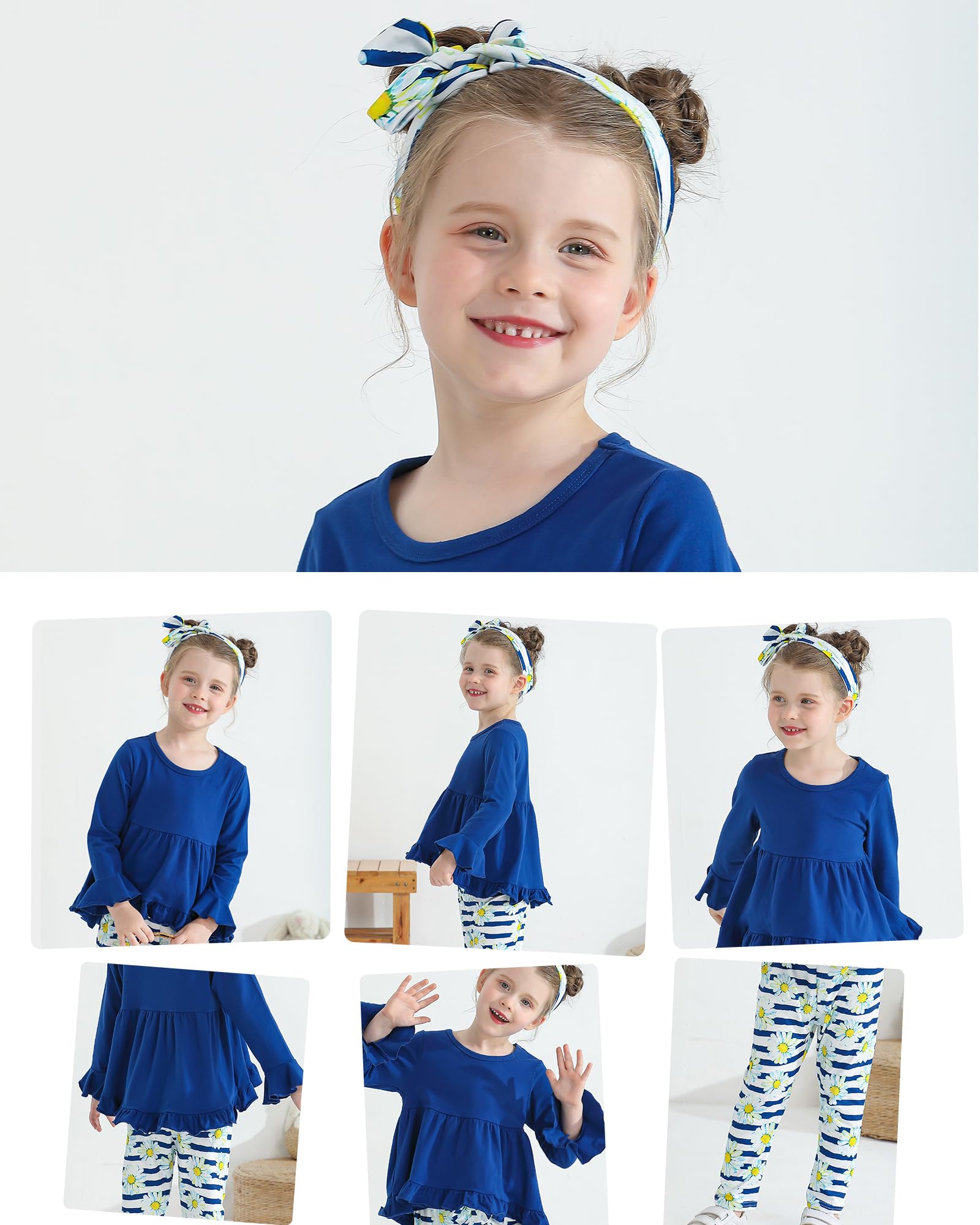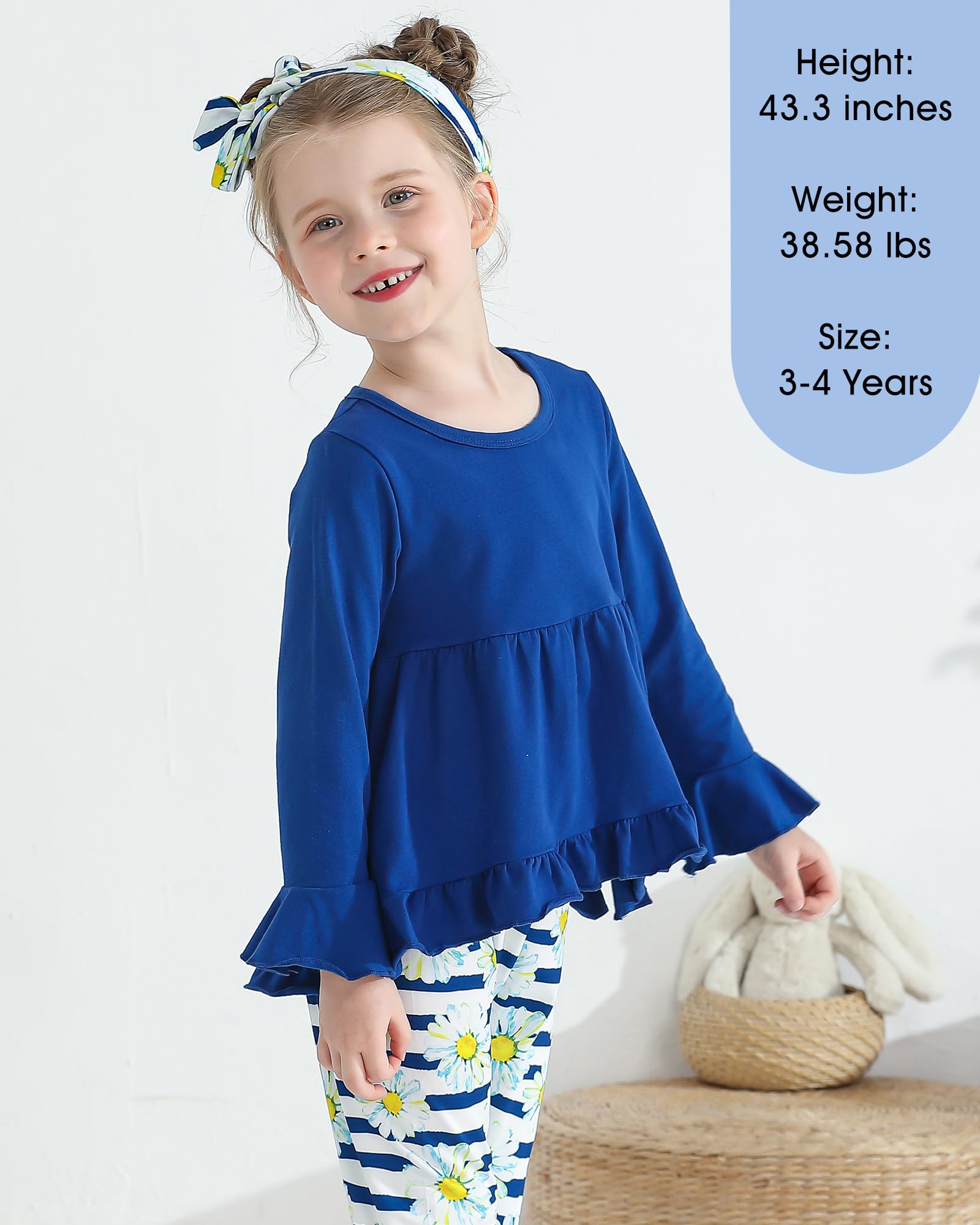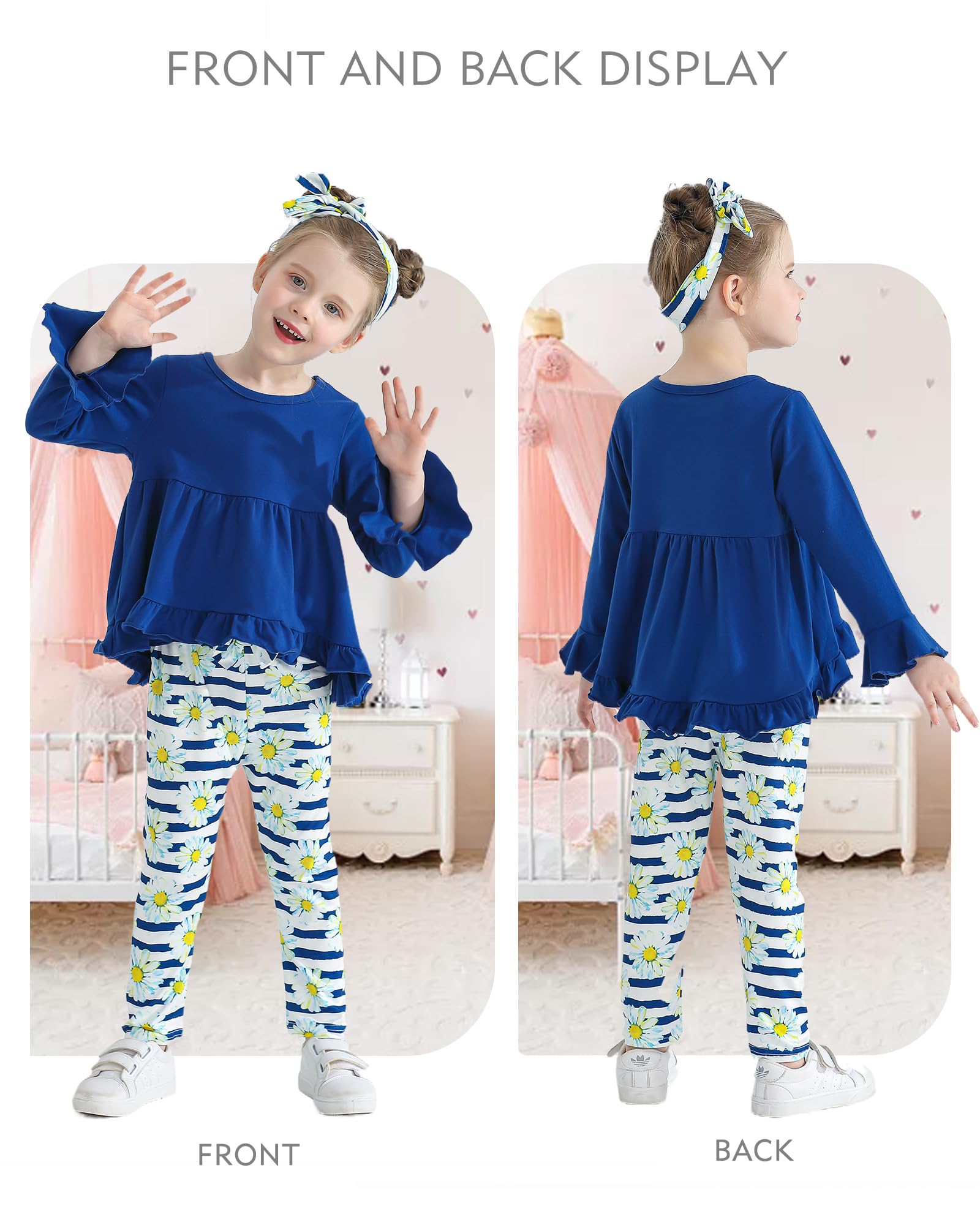 3 Pieces Toddler Little Girl Outift for Fall Winter: 1pc baby girl shirt + 1pc baby girl pants + 1pc untied headband