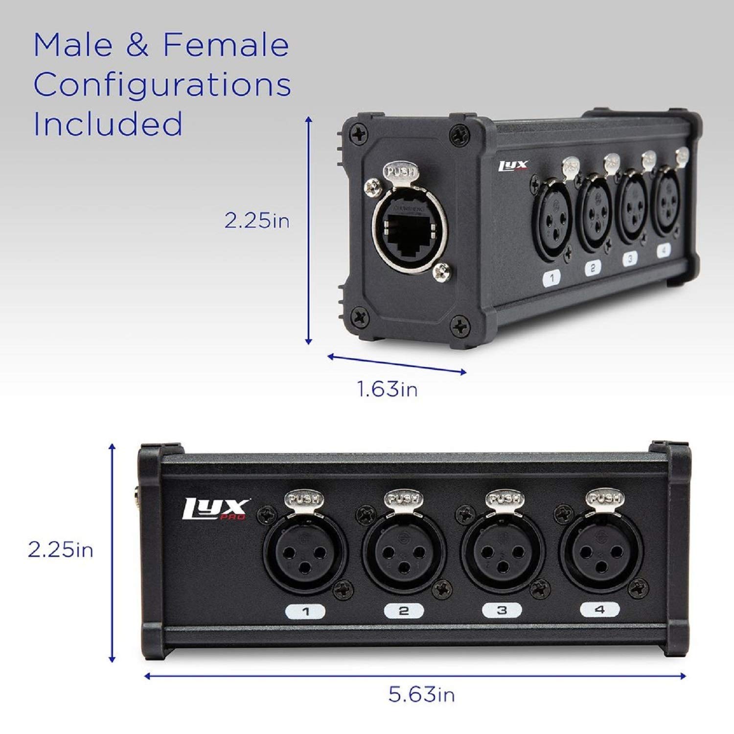 VERSATILE XLR BREAKOUT: 4 CH. 3 PIN FOR STAGE SOUND, LIGHTING, RECORDING STUDIO : Ideal for a wide range of applications including stage sound, lighting, and recording studio settings. With 4 channels and 3 pins, this XLR cable breakout can be used to connect a variety of audio devices to a single Cat 6 network cable up to 330 ft long.