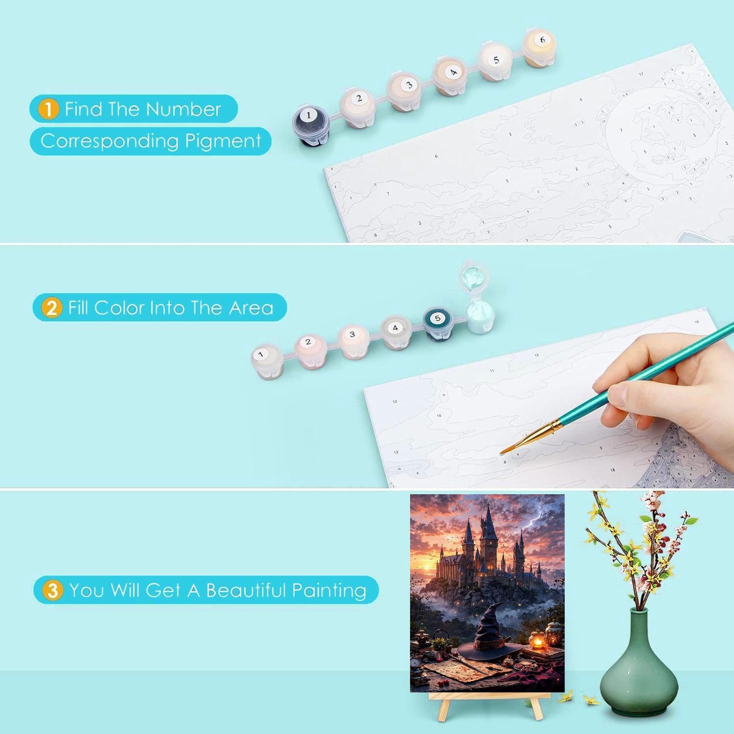 【EASY TO PAINT】Paint by numbers is very easy to smear, just follow the instruction and create an amazing art work, making you feel like a painter. You can decide the drawing turn according to your personal favor or in turns of the numbers. Paint out of your style