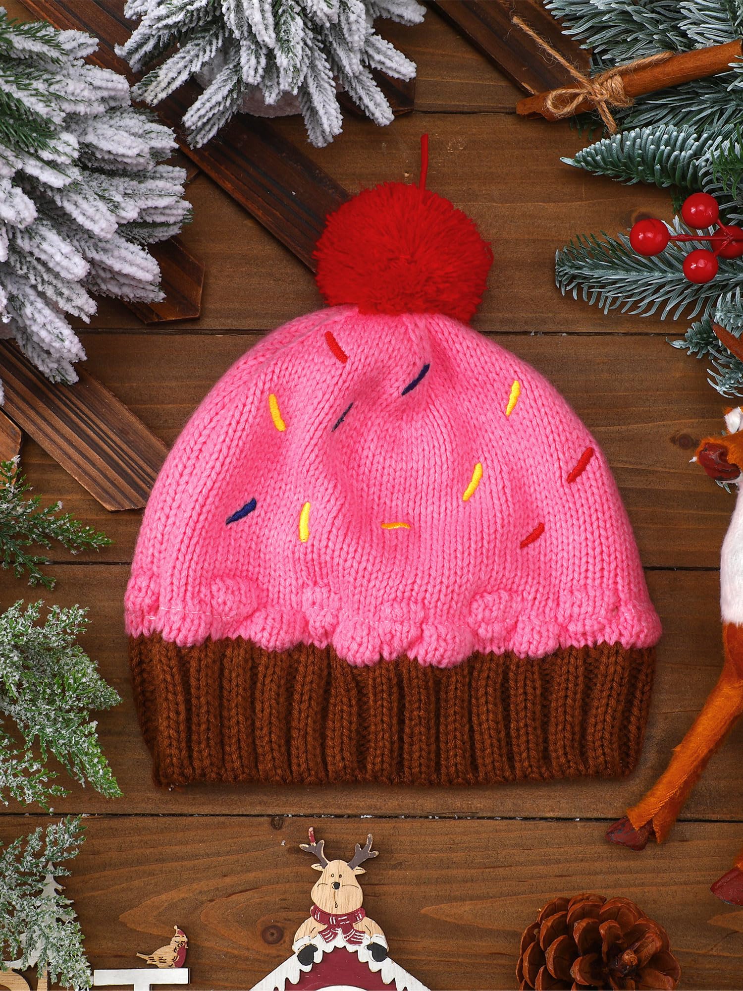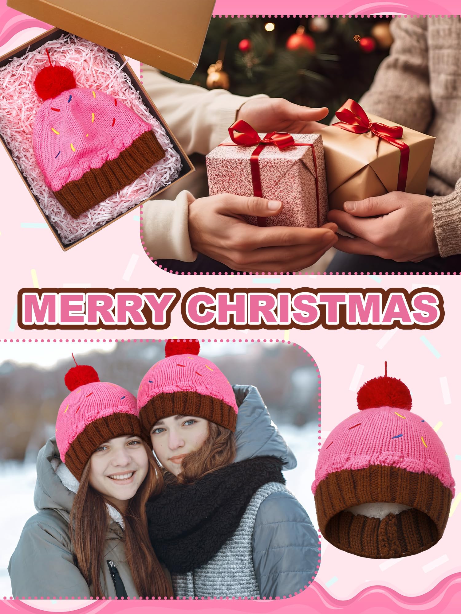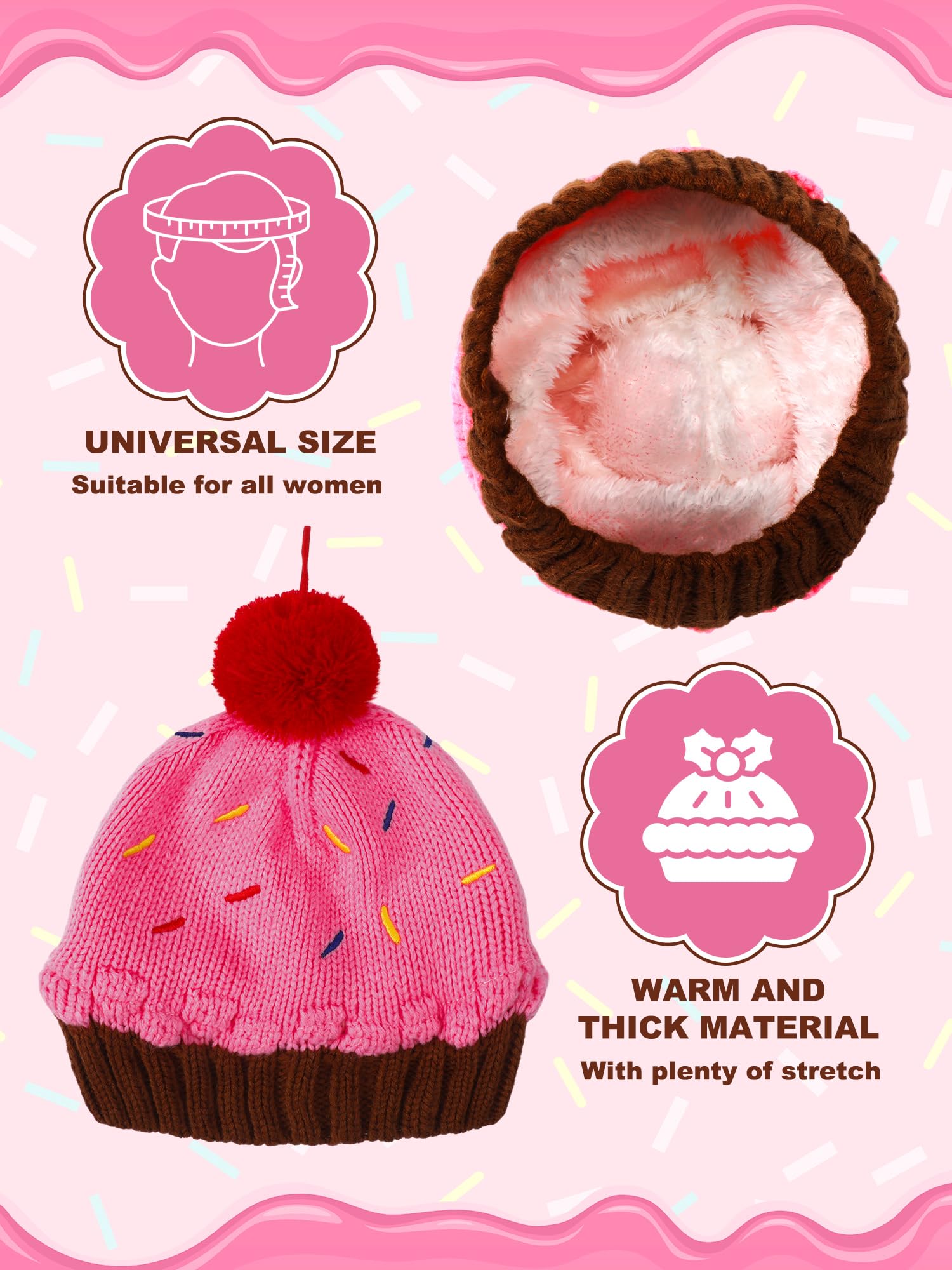 Ideal for Various Events: featuring a charming cupcake design with knitted lace, a cute pompom on the top, and colorful sugar grains, this Xmas cupcake beanie hat is a delightful hit for various situations; Be it skiing, hiking or parties