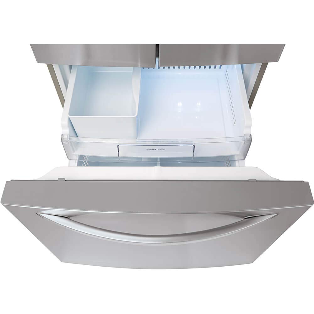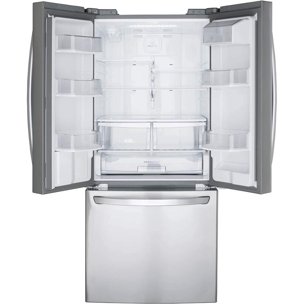 The LG LFDS22520S is a 30-inch French door refrigerator designed to fit within a standard kitchen layout. It offers a total storage capacity of 21.8 cubic feet, making it suitable for small to medium-sized households. This model features two full-width refrigerator doors and a bottom freezer drawer, giving it a sleek, modern look while providing easy access to both fresh and frozen foods.