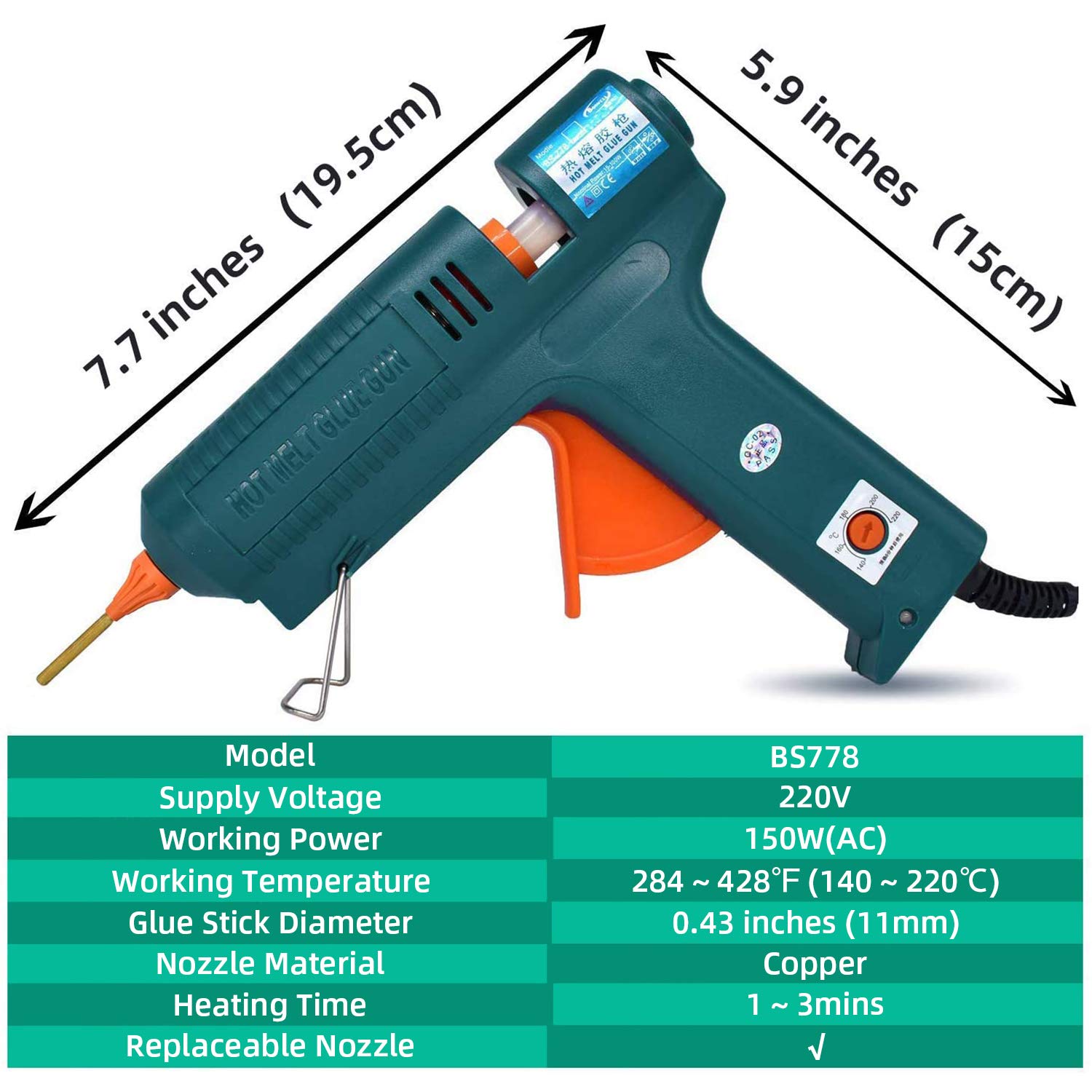 【NICE CONSTRUCTION】-Lightweight, easy squeeze trigger, rubber coating for easier cleaning, detachable stand to keep the gun stable and upright. It is an ideal adhesive for home, office and school DIY crafts projects including metal, wood, glass, card, fabric, plastic, ceramics and so on.