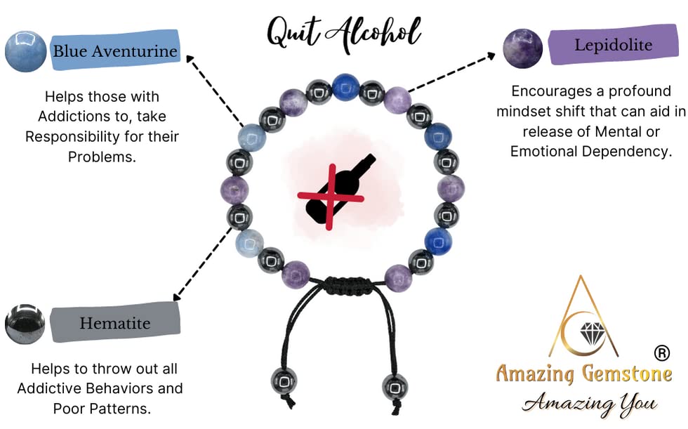 Bracelet for Quit Alcohol contains real crystal beads Lepidolite, Blue Aventurine and Hematite. Lepidolite helps in release bad habits, Blue Aventurine for eases pain & Hematite throws out all Addictive Stocking Stuffers.