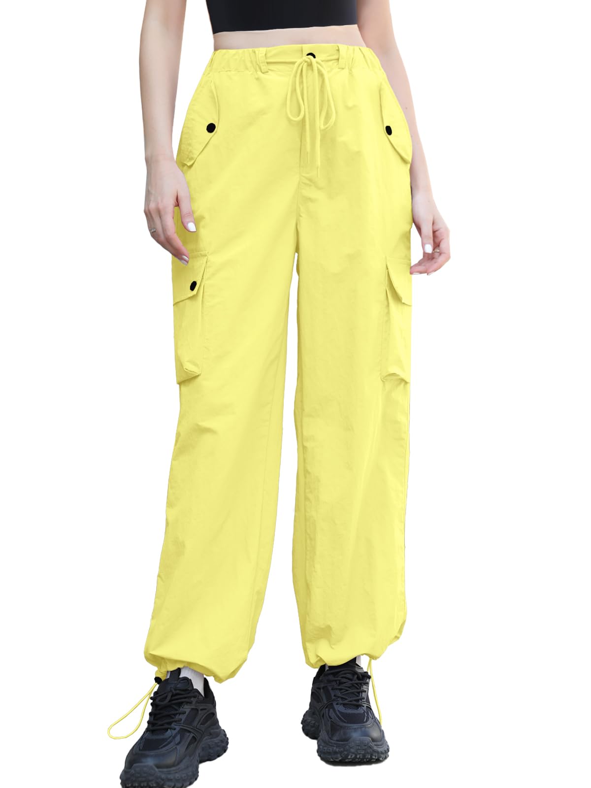 Design:Y2K cargo pants featuring a baggy oversized silhouette with color-matched elastic drawstring waist, adjustable ankle drawstring cuffs, ankle-length cut, and 4 functional cargo pockets for essentials storage.