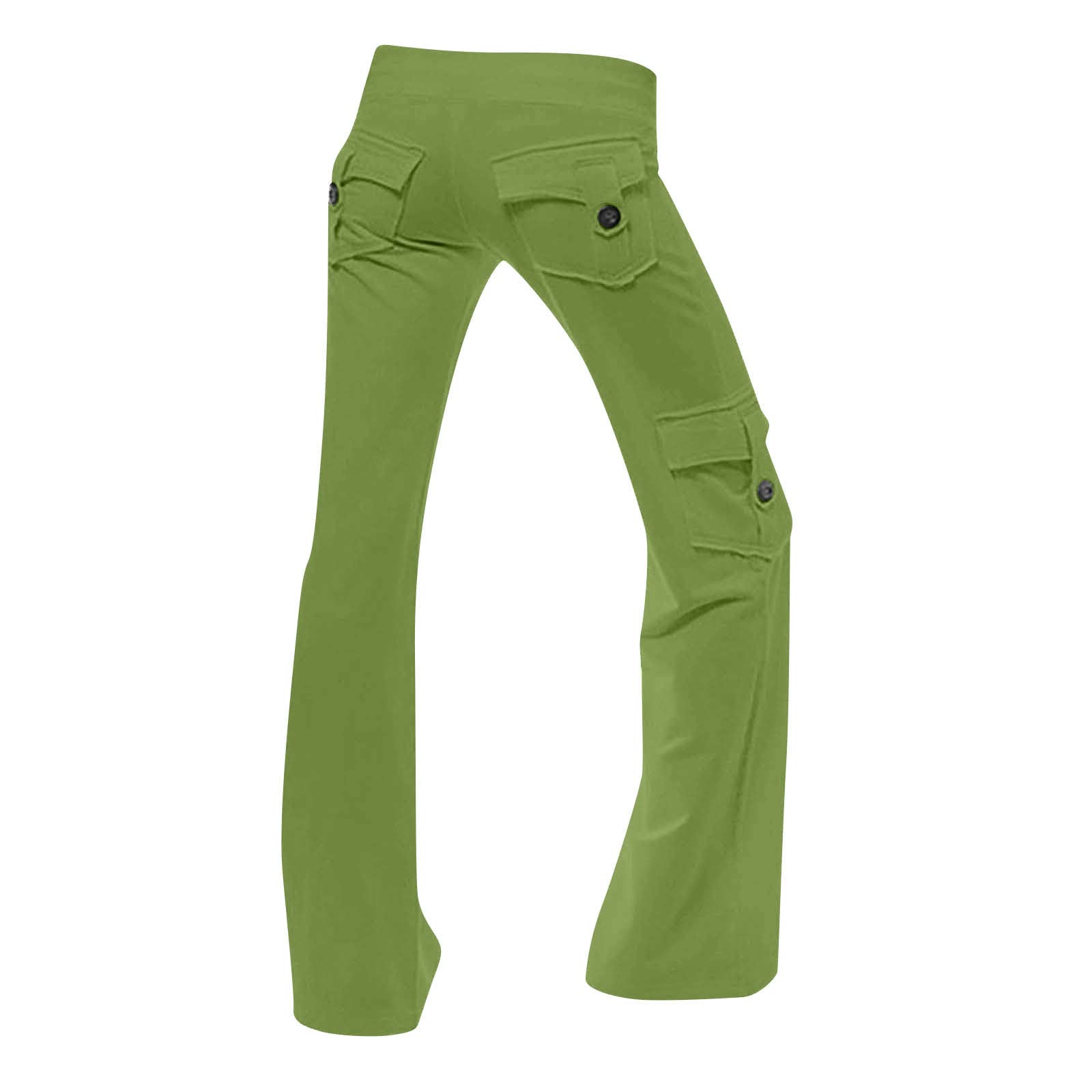 VERSATILE DESIGN: Womens cargo pants, High-waisted style with adjustable drawstring waistband ensures a secure. Wide-leg yoga cargo pants featuring convenient side pockets and decorative button details for both athletic and casual wear. Flattering bootcut silhouette with contrast stitching and functional button accents on cargo pockets