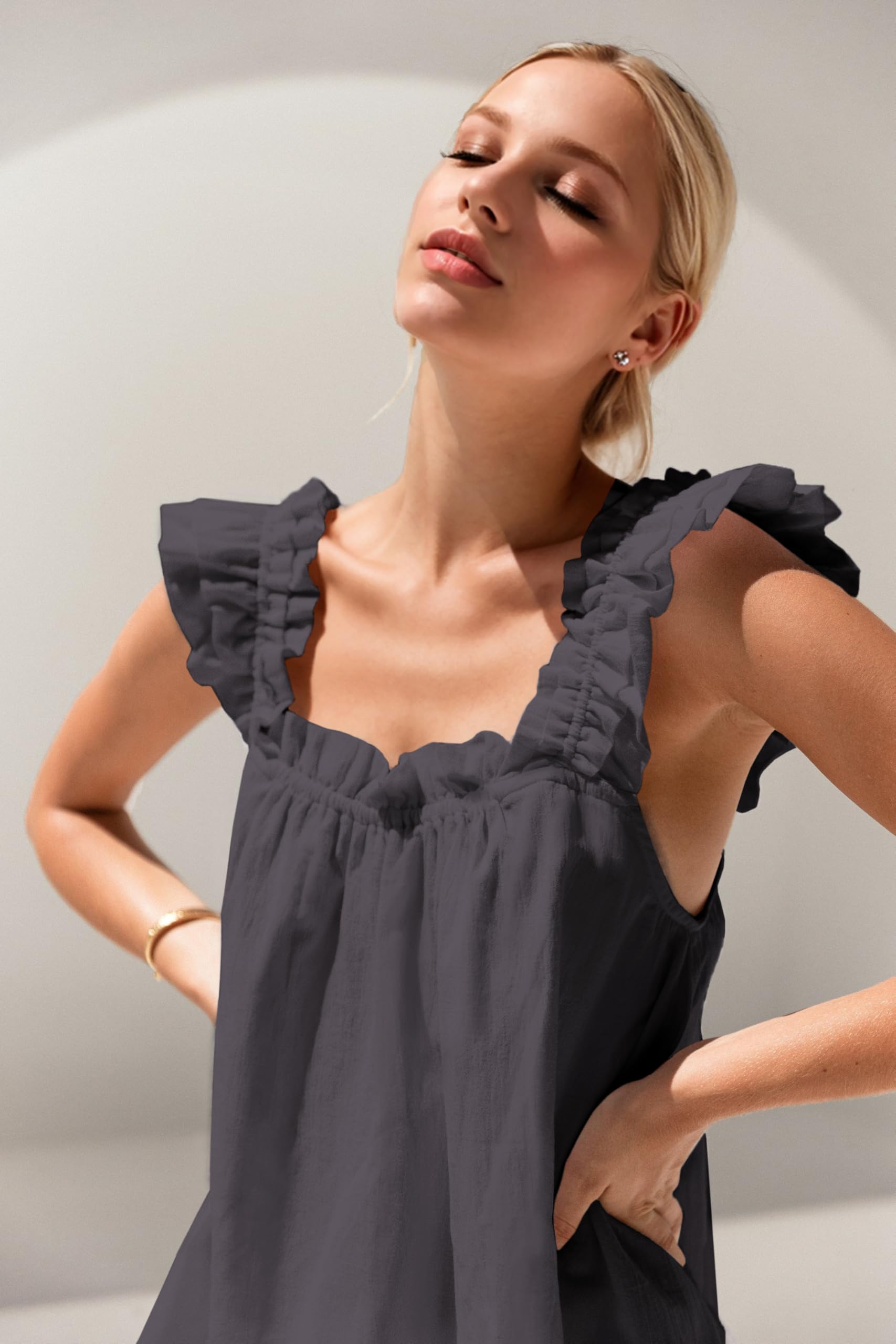 Classy Design: Our Women’s PJ sets feature a sleeveless top perfectly complemented by cozy elastic drawstring shorts with side ruffle detail (no pockets) for a delightful bedtime ensemble.