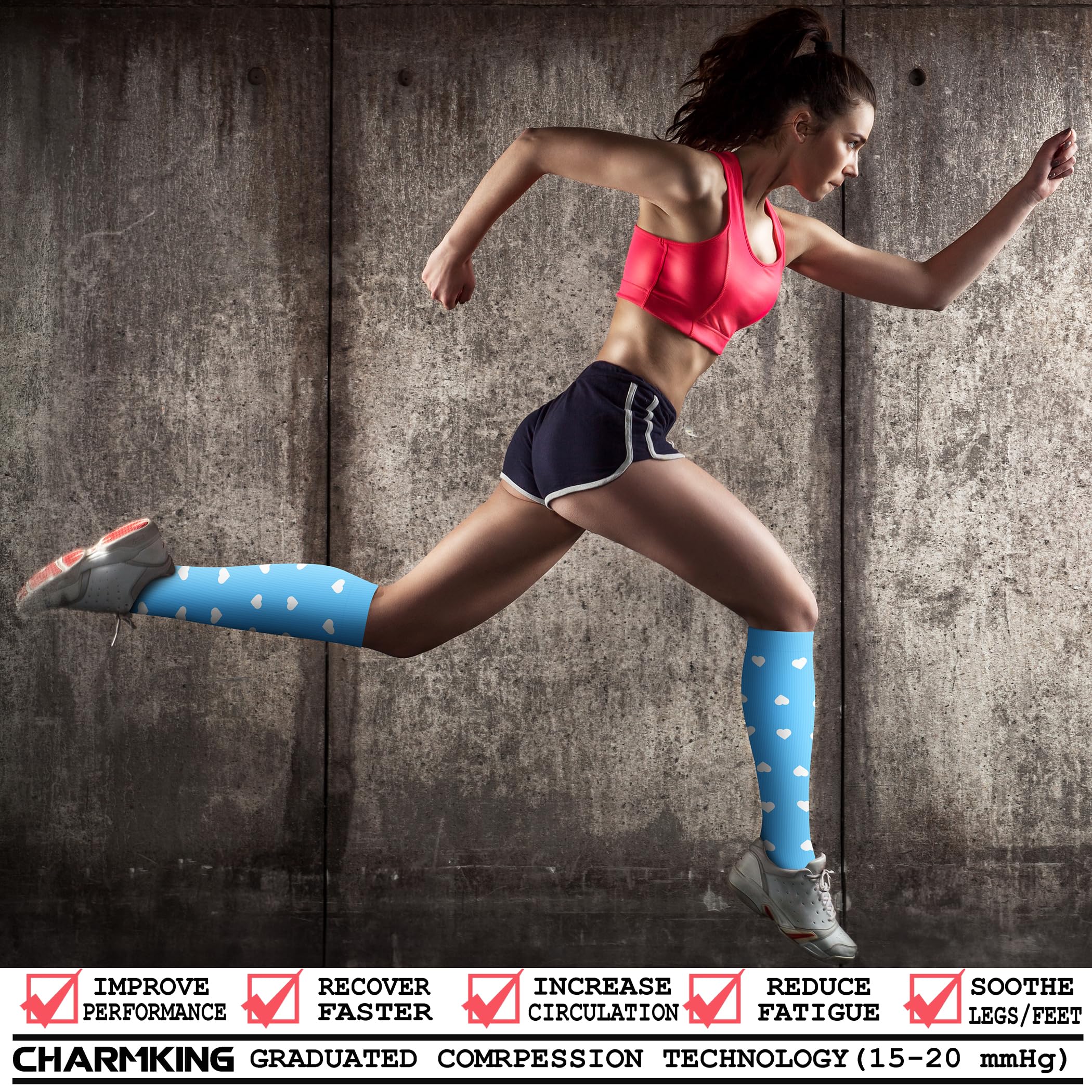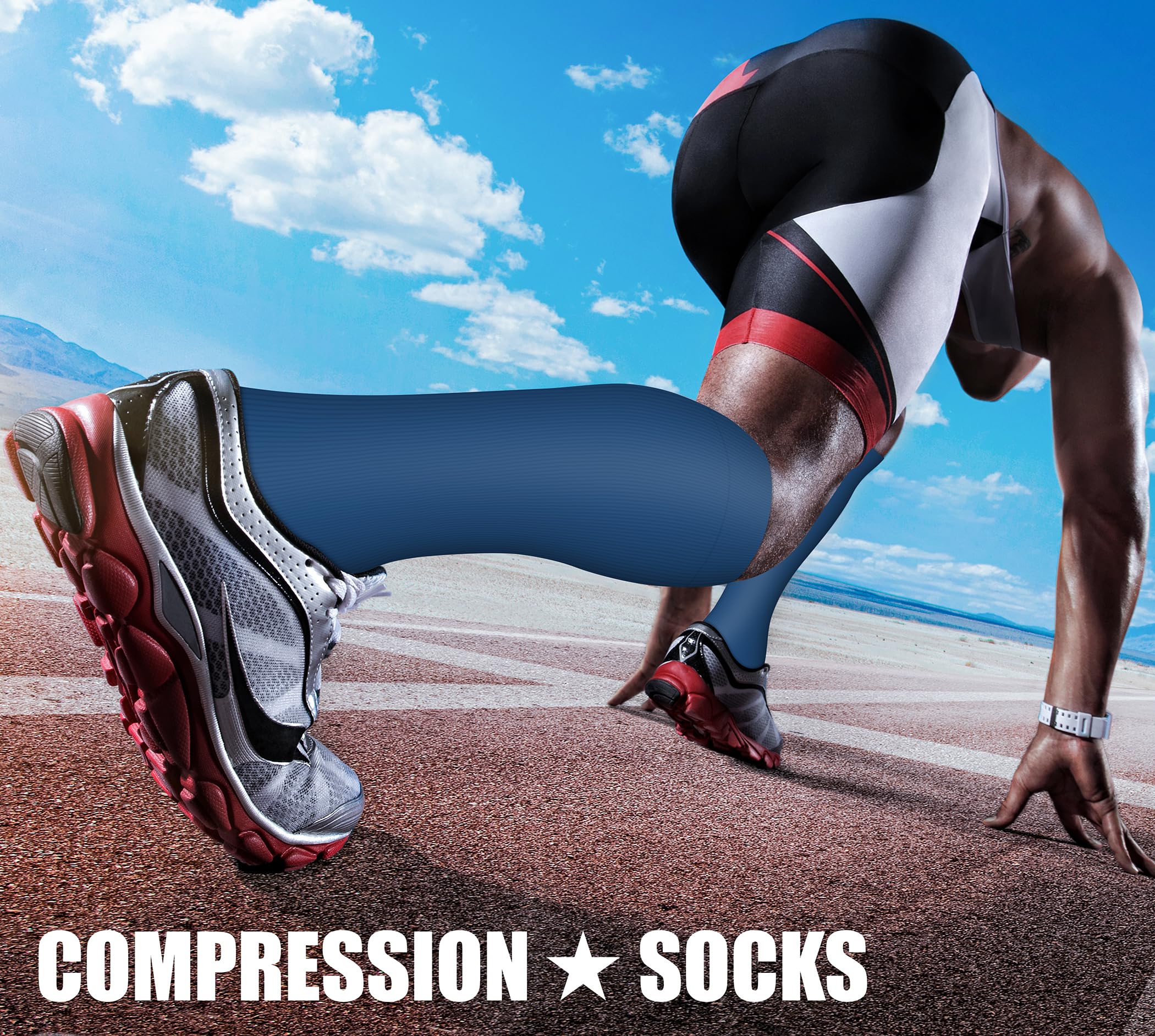 COMPRESSION SOCKS - We intend combining fashion, technology and science to bring you the triple comfort without. The material of our compression socks are upgraded with nylon percentage from 40% to 85%. Delivers 360-degree stretch for greater flexibility and durability. Breathable high performance fabric keeps an optimal temperature.