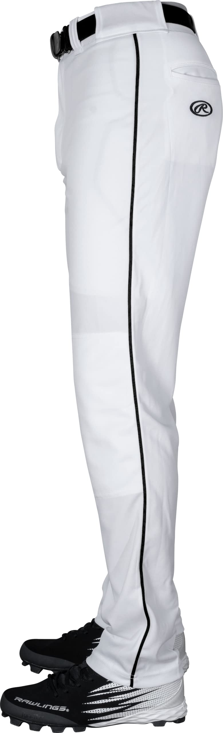 Description Rawlings Men's Belted 31 Cloth Fit Baseball PantsFeatures: * Crafted with medium weight polyester double knit fabric * Waistband with belt loops, snap closure and zipper fly provides ideal fit * Extra layer of fabric at knees for added abrasion protection when sliding * 2 set-in back pockets provide convenient place to stash batting gloves * Waist Size: S (28-30"), M (32-34"), L (36-38"), XL (40-42"), 2XL (44-46") * Inseam: S (31"), M (33"), L (33"), XL (34"), 2XL (34") * Semi-relaxed fit * Material: 100% polyester