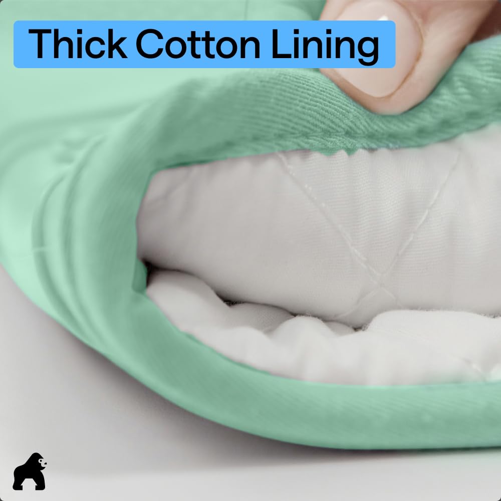 THICK COTTON LINING THROUGHOUT: stay comfortable while you cook; soft cotton lining offers additional protection and comfort, and feel simply amazing; plus, silicone is flexible and conforms easily to your unique grip