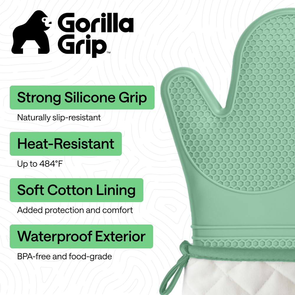 WATERPROOF AND STAIN RESISTANT: no more constantly stained oven mitts; Gorilla Grip Silicone Mitts are both stain resistant and waterproof; spills can easily and instantly be rinsed away under water; hot liquids won’t soak through and scald your skin as they would with other materials