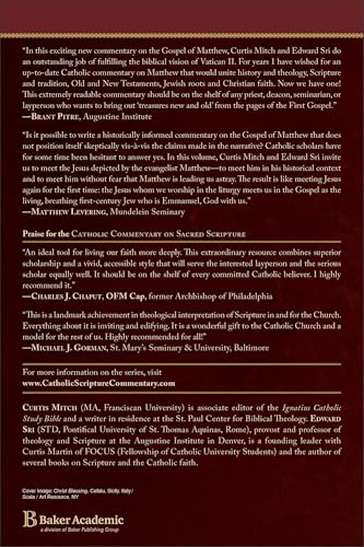 Examine the New Testament from within the living tradition of the Catholic Church This engaging commentary on the Gospel of Matthew is the fifth of seventeen volumes in the Catholic Commentary on Sacred Scripture (CCSS), which will cover the entire New Testament. The CCSS relates Scripture to Christian life today, is faithfully Catholic, and is supplemented by features designed to help pastoral ministers, lay readers, and students better comprehend the Bible and use it more effectively. Commentary features include: ● Biblical text from the New American Bible, Revised Edition (NABRE) ● References to the Catechism, the Lectionary, and related biblical texts ● Theological insights from Church fathers, saints, and popes ● Reflection and application sections for daily Christian living ● Suggested resources and an index of pastoral subjects Attractively packaged and accessibly written, the CCSS aims to help readers understand their faith more deeply, nourish their spiritual life, and share the good news with others.