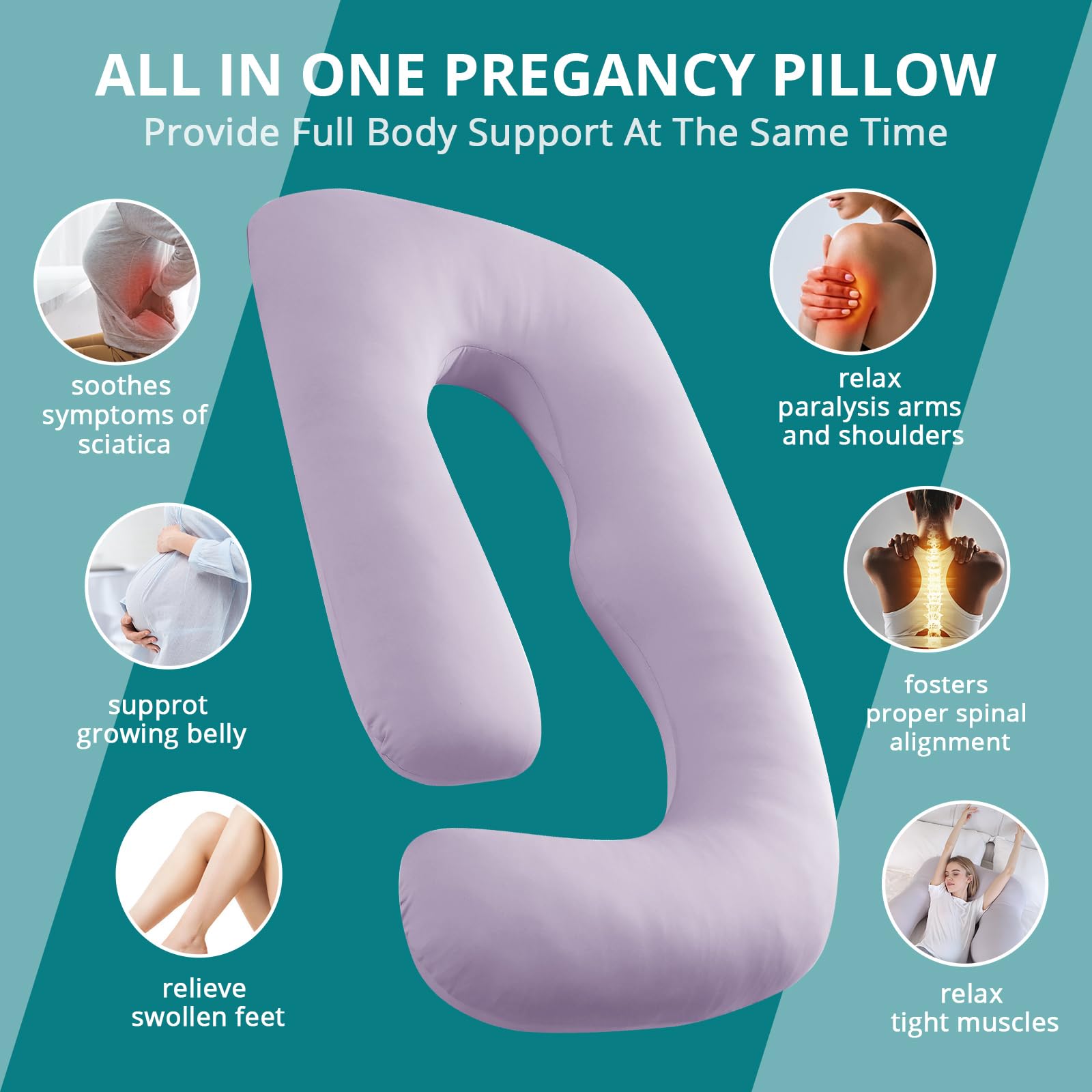 Premium Down Alternative Filling: Our U-shaped full body pillow is filled with 7lbs down-alternative filling. Blended with 40% silicified fiber and 60% polyester fibers, our pregnancy pillow strikes a good balance between support and comfort