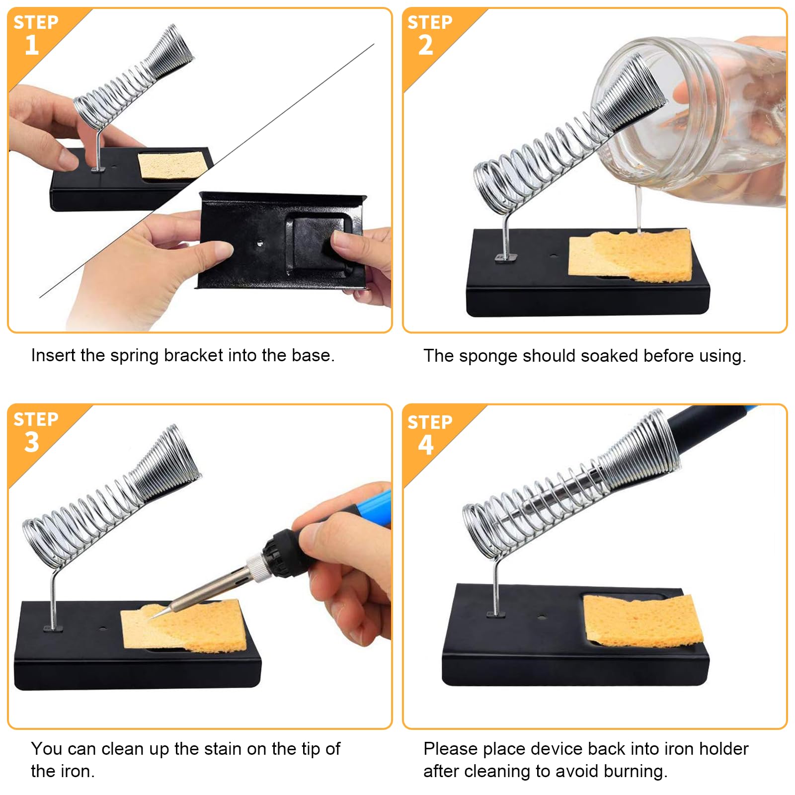Secure Soldering Iron Support Station: The soldering iron support station features a sturdy dual-spring holder with a sponge, providing a safe and reliable place for your soldering iron while working. Its secure base prevents accidents, ensuring a safer experience compared to flimsy stands. This design minimizes the risk of burns and damage during use