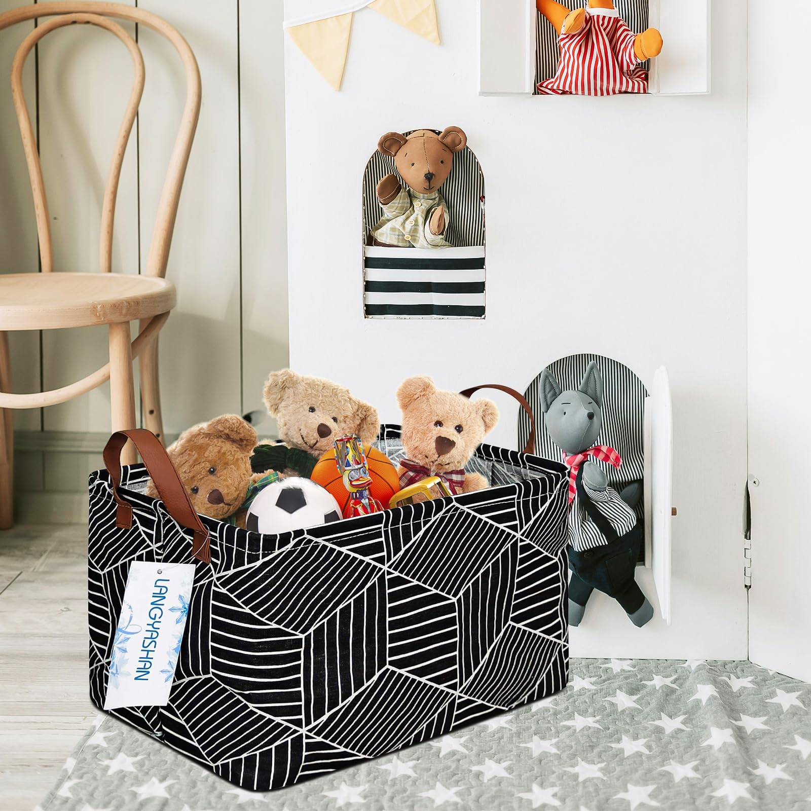 Spaclous and no more clutter in any room: These baskets hold everything from stuffed animals, toys and books, to craft supplies, towels and blankets. The list is endless. Great for a nursery, kids room, playroom, craft room, bathroom,baby gift, kitchen and closet organization etc.