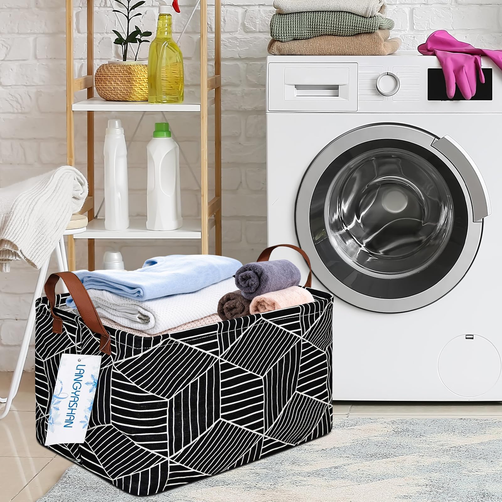 Note:The storage basket comes with compression packing which may result in crumpled in long-distance transit. It will recover after a period of time using or put stuff in side.and also can be smoothed out by steam iron and hairdryer. 1. Made of Fabric: The material is rigid,it will stand up on its own neatly, not stay 'soft' looking if it isn't packed full of stuff, they hold their shape perfectly. 2.Folding for easy storage: The storage hamper are folding for easy storage.Fold up the bins and carry the storage basket container wherever you want ,like in your truck ,car,closet or study room. 3.Easy to care:This convenient storage basket are easy to clean,just wipe with a damp sponge or cloth. 4.Thick handles: Every storage container has two thick handles,these thick handles are designed to give you optimum tension and comfort while transporting these amazing storage bins.