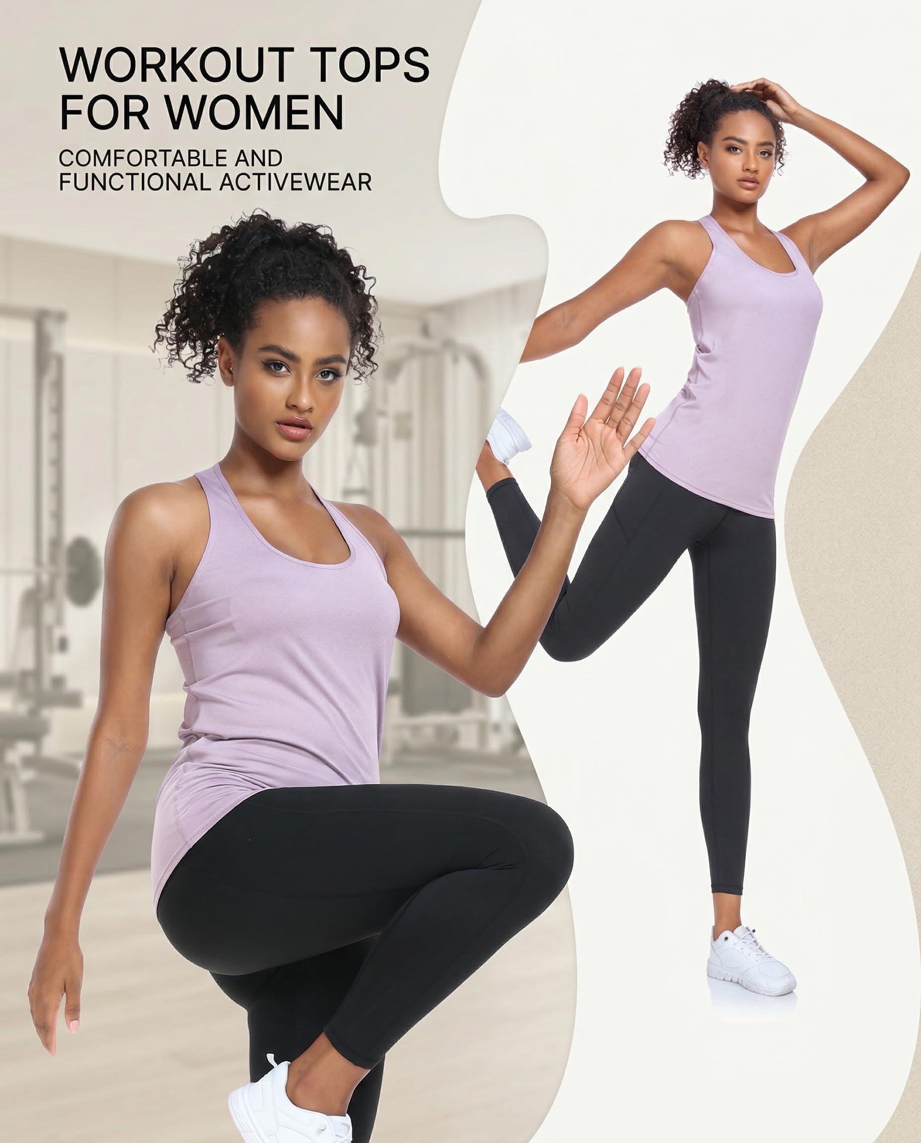 WORKOUT TOPS FOR WOMEN: These tank top for women (no bra-inserted) are made of 85% polyester and 15% spandex fabric which are breathable and lightweight , keeping you comfortable and dry while workout. Super soft and fitted sleeveless activewear.