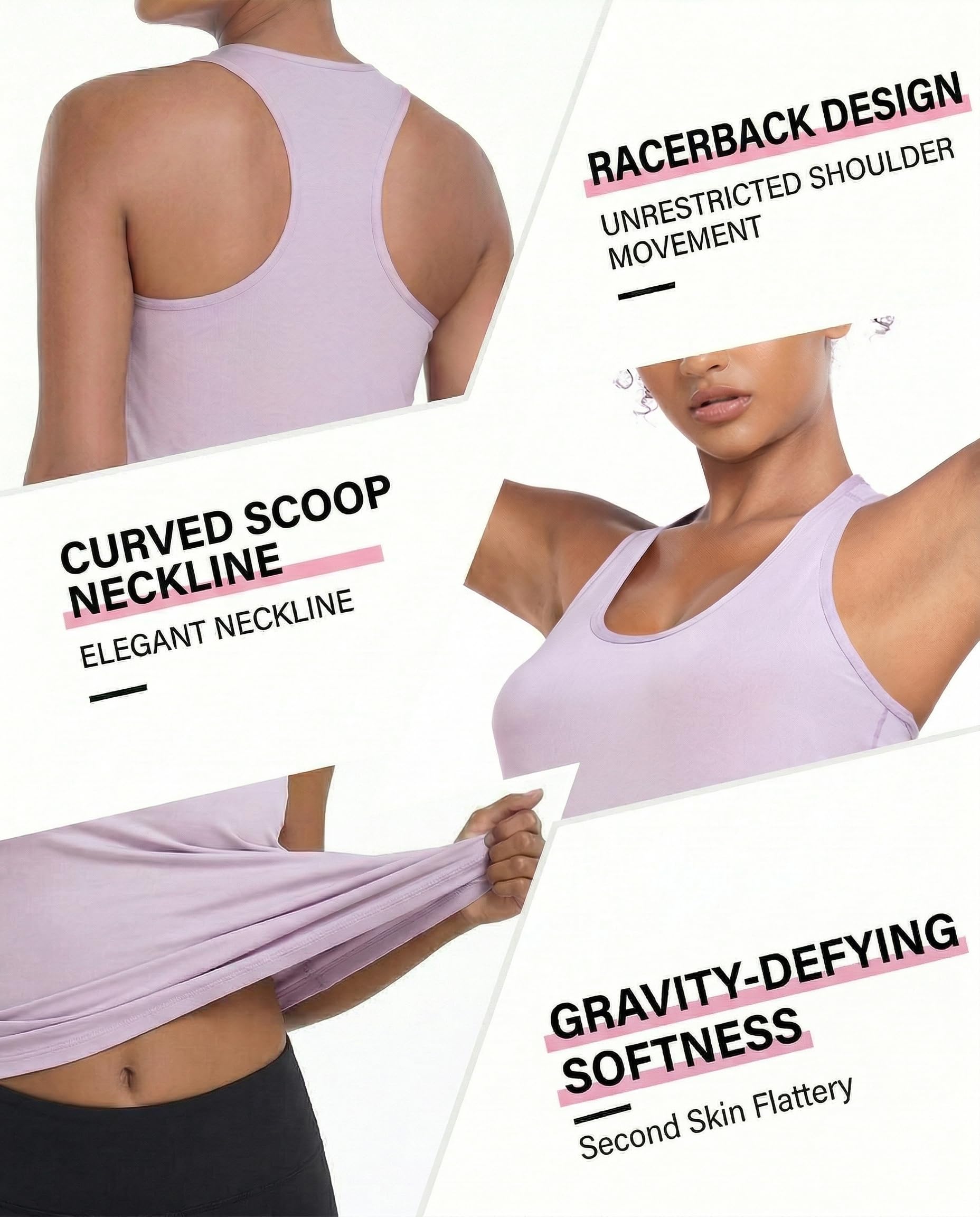 SUPER VALUE BONUS 5 PACK (Solid): Pack of 5 brilliant color razor back tank tops. You’ll be able to move, bend and stretch as much as your workout requires.