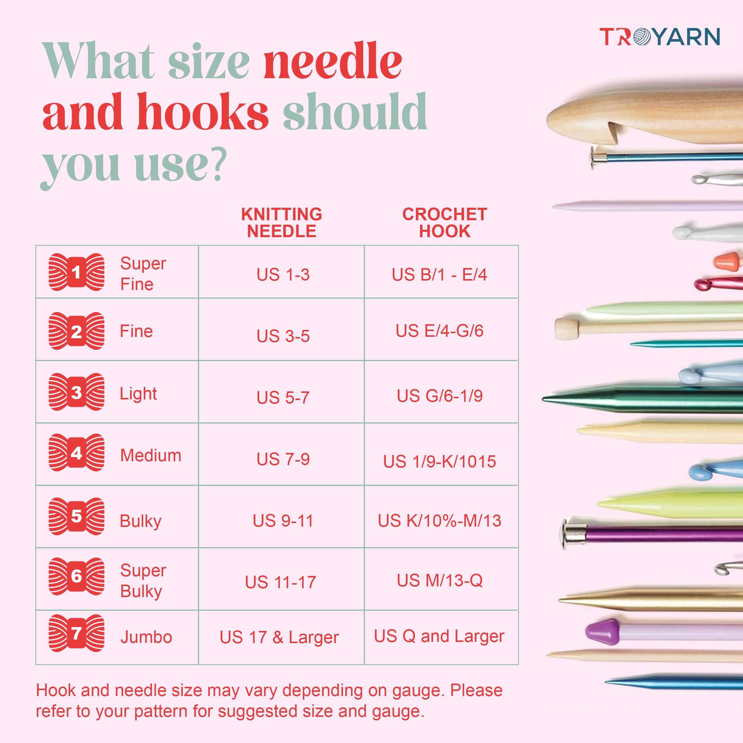 🧶Needle size US 4 - 8 or 3.5 - 5mm Hook size 2mm - 4mm (G)