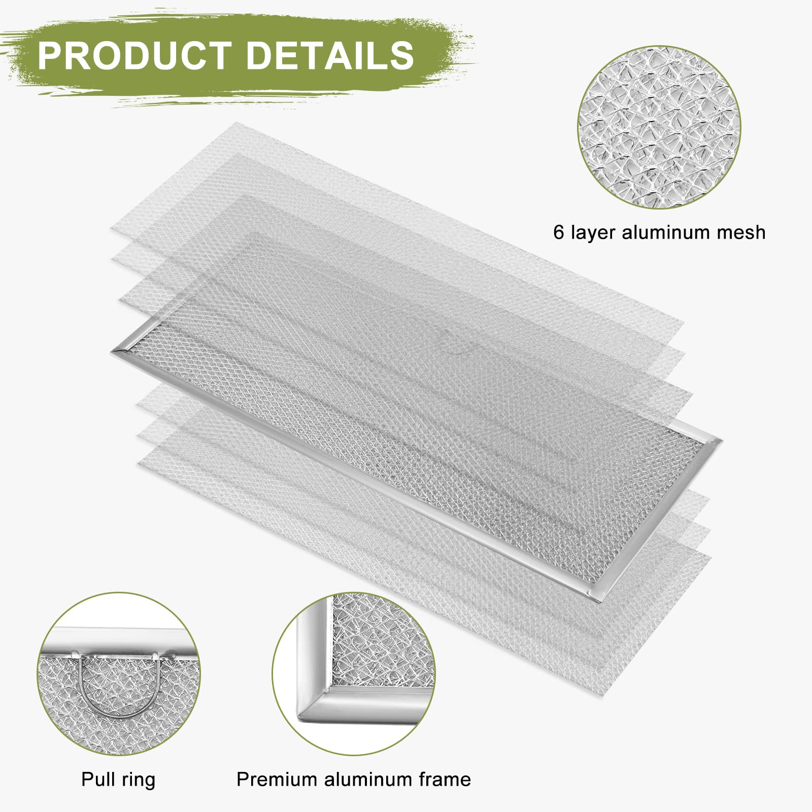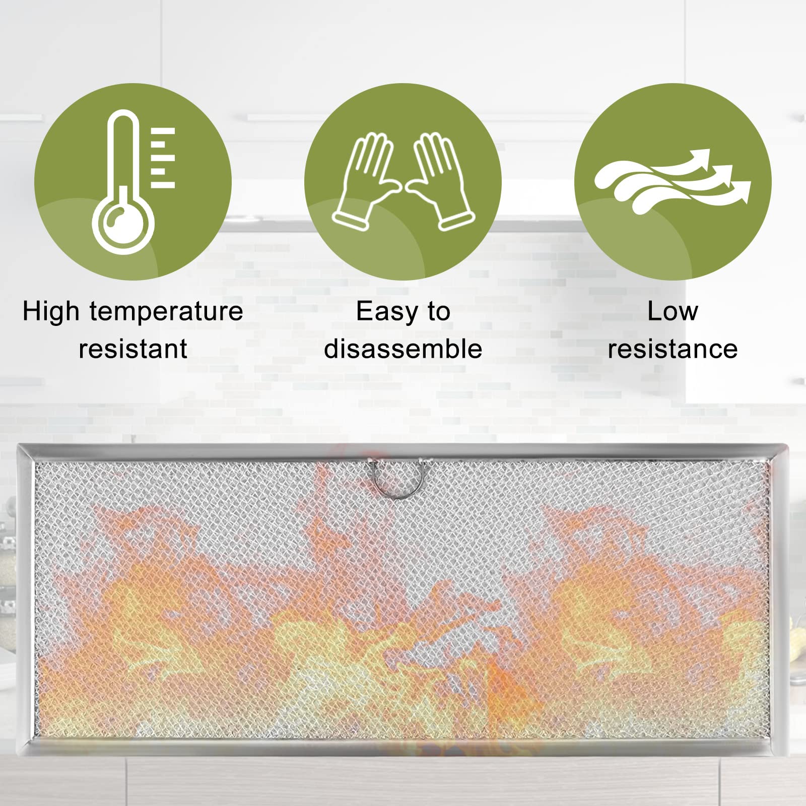 【6-Layer Mesh + Thickened Aluminum Construction】Downdraft grease filter replacement crafted with thickened aluminum and 6-layer aluminum mesh, this WP71002111 stove vent filter traps more grease, oil, and food particles than standard filters. Range hood grease filter blocks grease buildup in downdraft vents and internal fans, ensuring your JennAir range hood maintains top performance and efficient operation