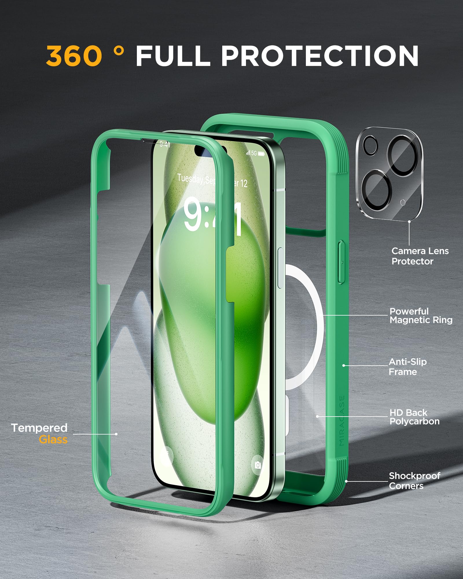 [STYLISH BUMPER & TRANSPARENT BACK PANEL] Miracase designed stylish bumper case for iPhone 15 Plus. Comes with a cool-looking design with a transparent back and a built-in screen protector. Show off your original iPhone 15 Plus color without sacrificing any protection.