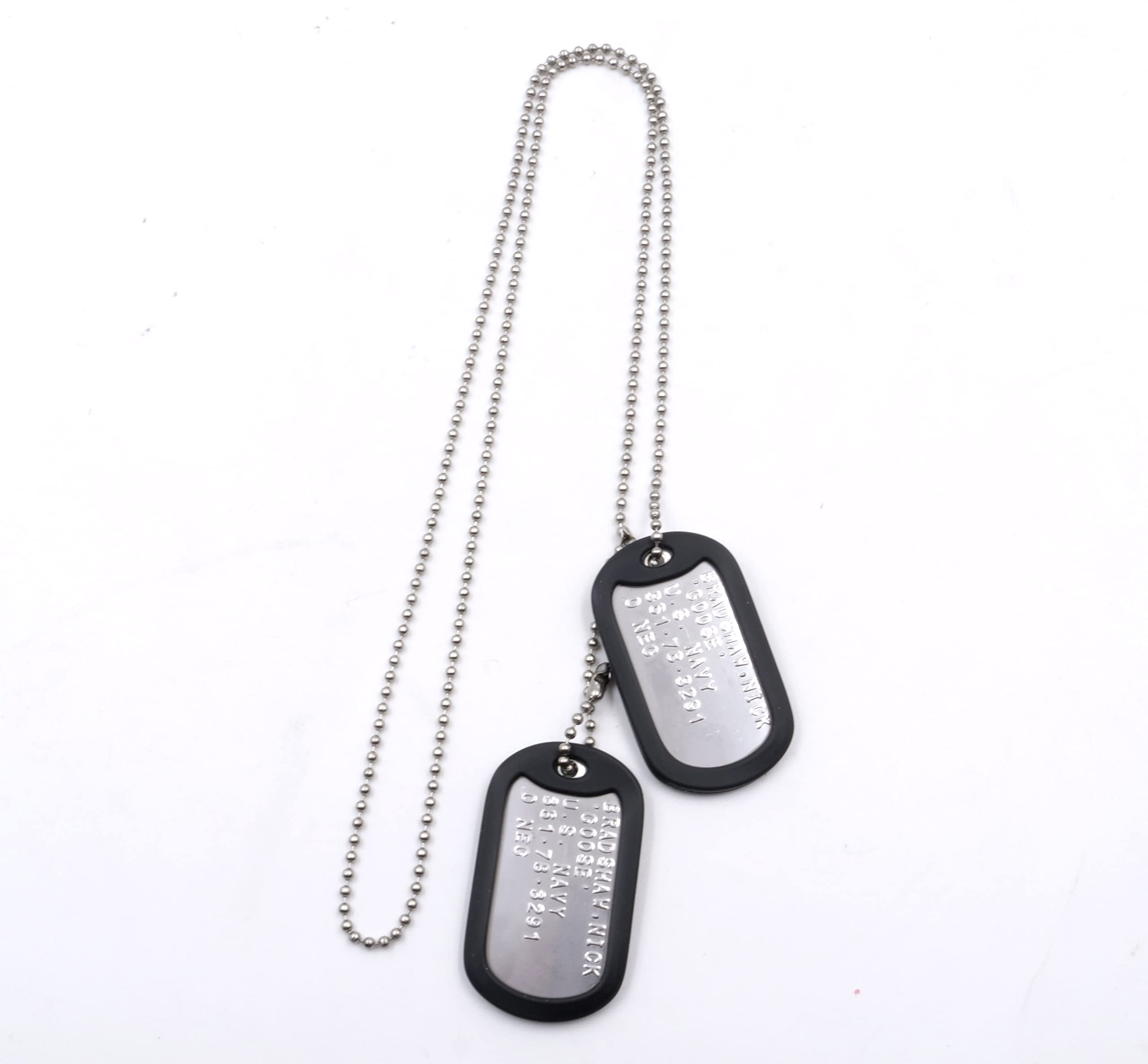 These memorabilia dog tags make great additions to any fan collection or as a costume prop accessory! Made of military grade/spec T304 stainless steel. Includes a 27 inch stainless steel ball long chain & 4.5 inch ball short chain. Made in the USA!