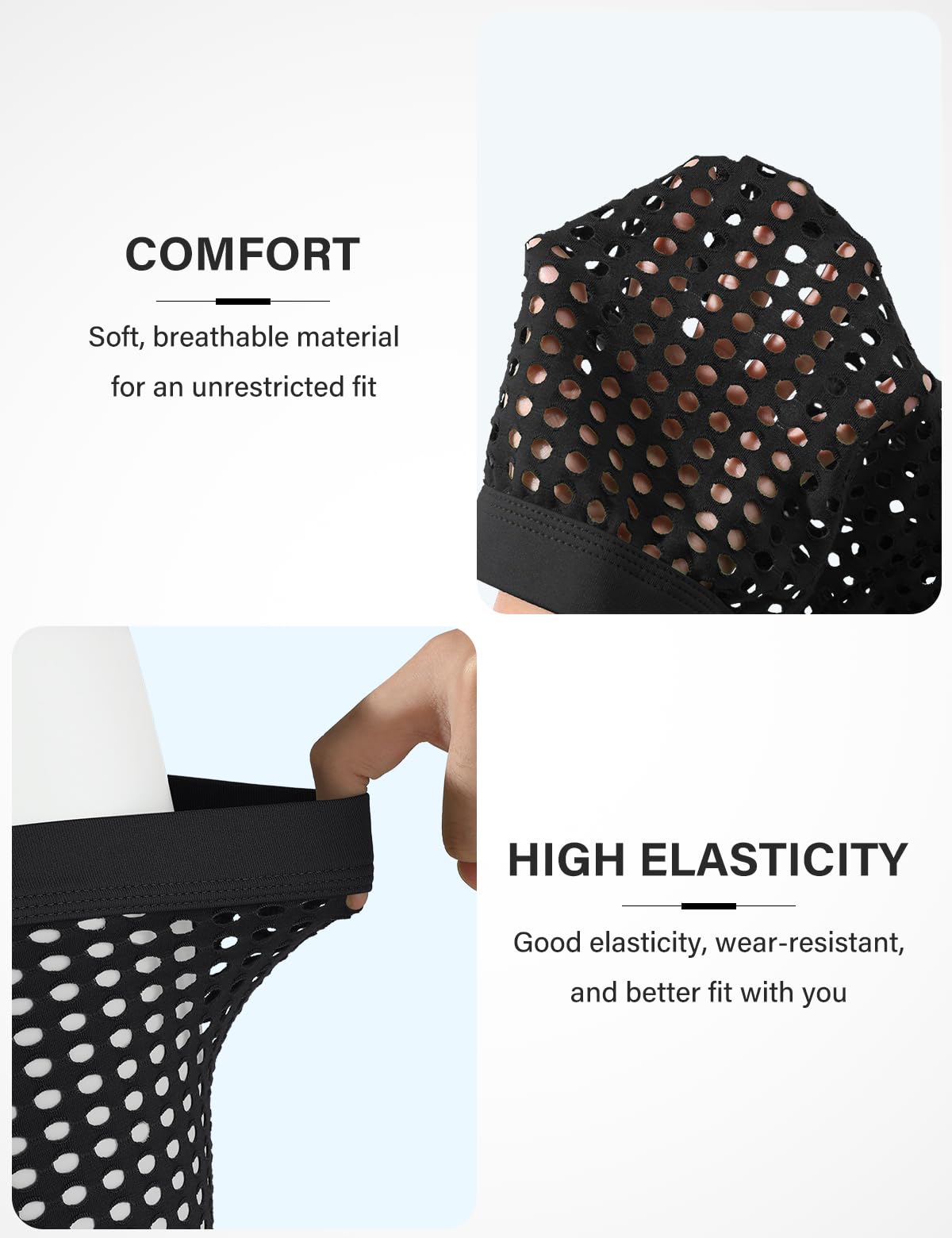 Ventilated design make you feel free and suitable for daily wear at home or outdoor activities and with the 3D pouch design which will keep everything in place.