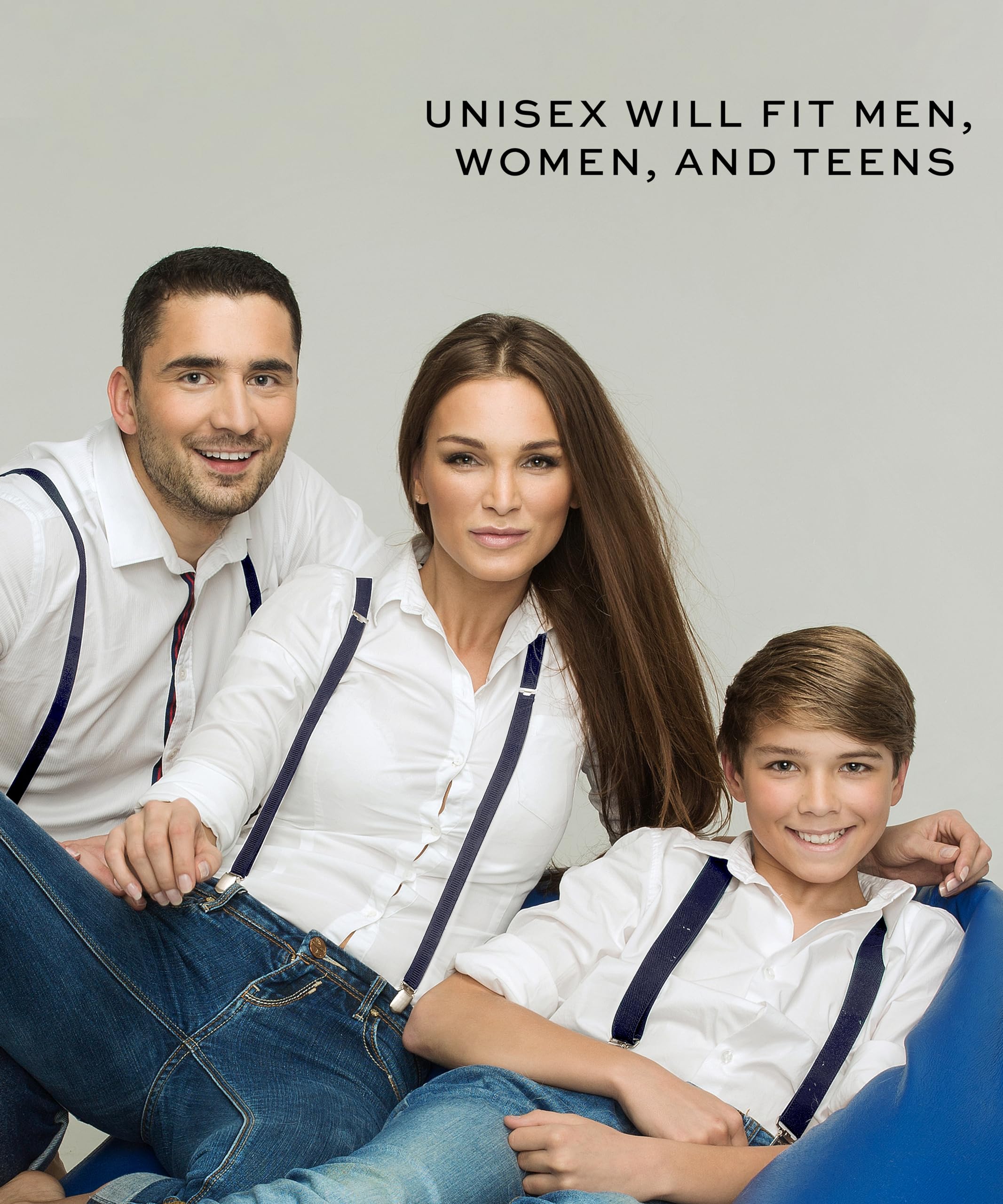 ONE SIZE FITS MOST - Perfect for the (almost) entire family! These suspenders fit men, women, and teens / young adults. Wear these unisex suspenders with confidence in your fancy tuxedo dress trousers or your most comfortable pair of jeans.