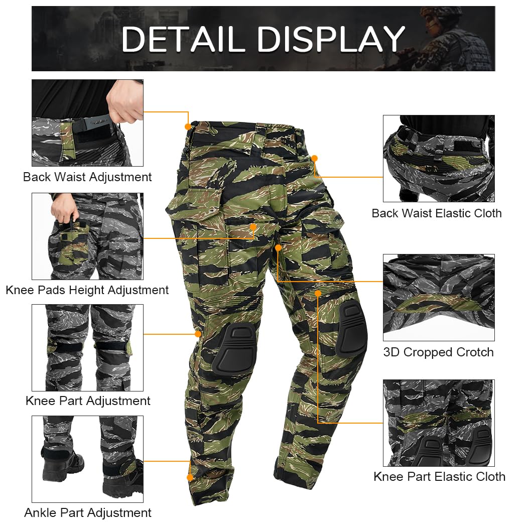 Occasion: The combat pants are suitable for various outdoor activities, such as camping, shooting, hunting, paintball, airsoft, hiking, travel, etc. They are also suitable for daily wear.