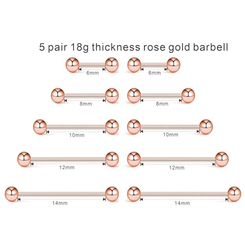 【DIMENSION】: 18G(1.0mm) bar thickness,Multiple bar length: 6mm,8mm,10mm,12mm and 14mm,5 different length. Beads: Ξ¦3mm.Each size one pair.Each package contain 5 pairs.