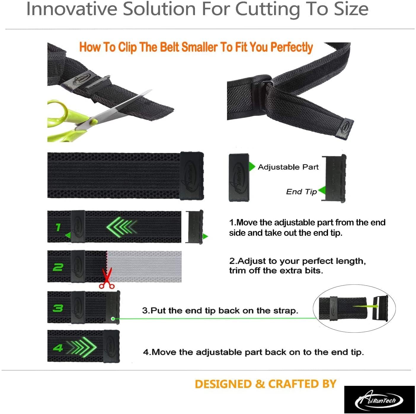 ANTI-SLIP TECHNOLOGY FOR ULTIMATE FIT AND FRICTION-FREE COMFORT : AiRunTech Upgraded run belt hook&loop tape's in place nicely and doesn't loosen while running, give you the ultimate freedom of movement and comfort, personalized fit for hips from 18-51.2 inch (46cm-130cm), Designed to be worn low down on the hips, contoured grips ensure total comfort by removing friction, allows for a snug fit that stays in place without bouncing or chafing during use.