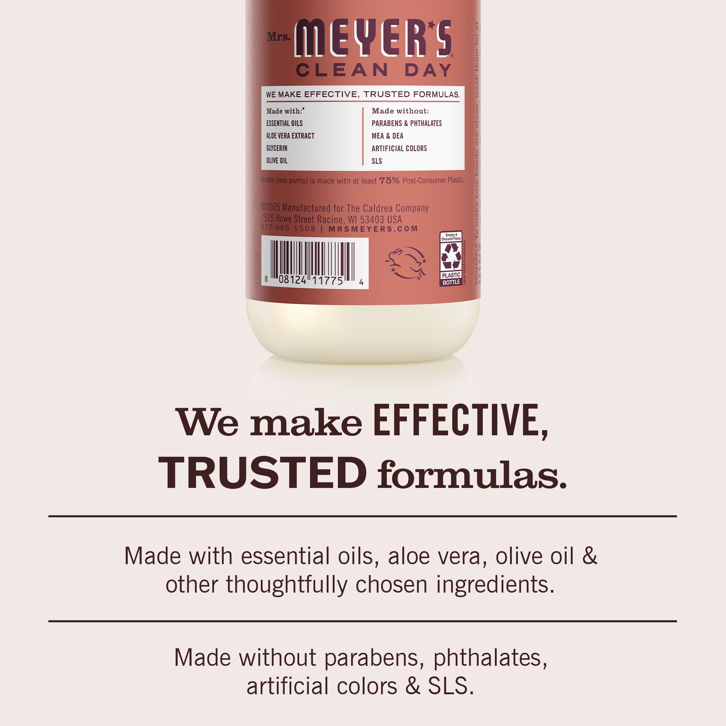 Mrs. Meyer’s Clean Day Liquid Hand Soap cleans hands thoroughly while helping keep skin soft and moisturized. Designed for frequent use, the formula removes everyday dirt without leaving hands feeling dry. Just clean hands, nothing extra.