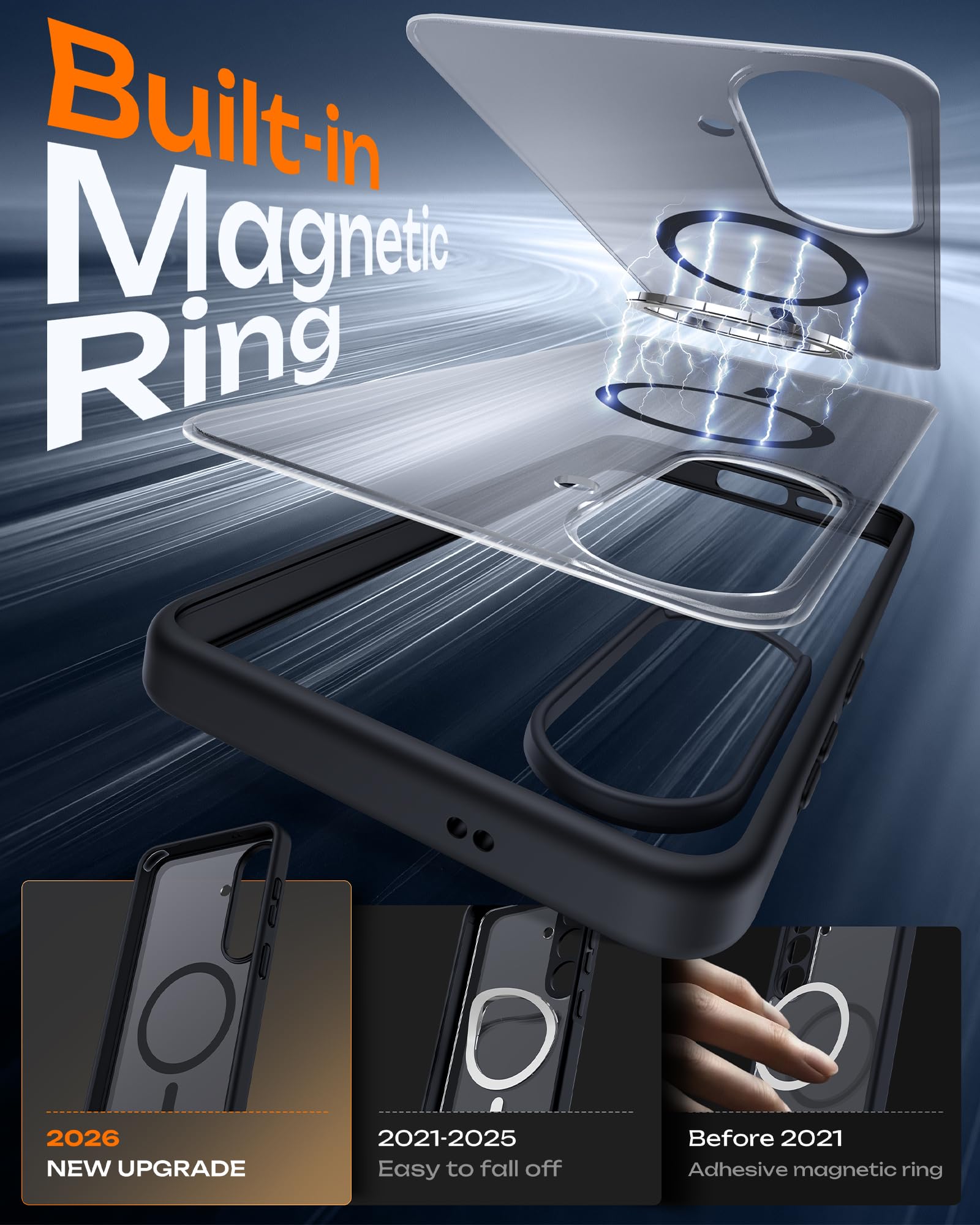 Embedded Magnetic Ring:Upgraded for galaxy s26 Magnetic Case. Built-in magnetic ring never falls off. 18N ultra-strong power, perfect for all your Mag accessories. It holds up well on your Mag car mount, even over strong bumps