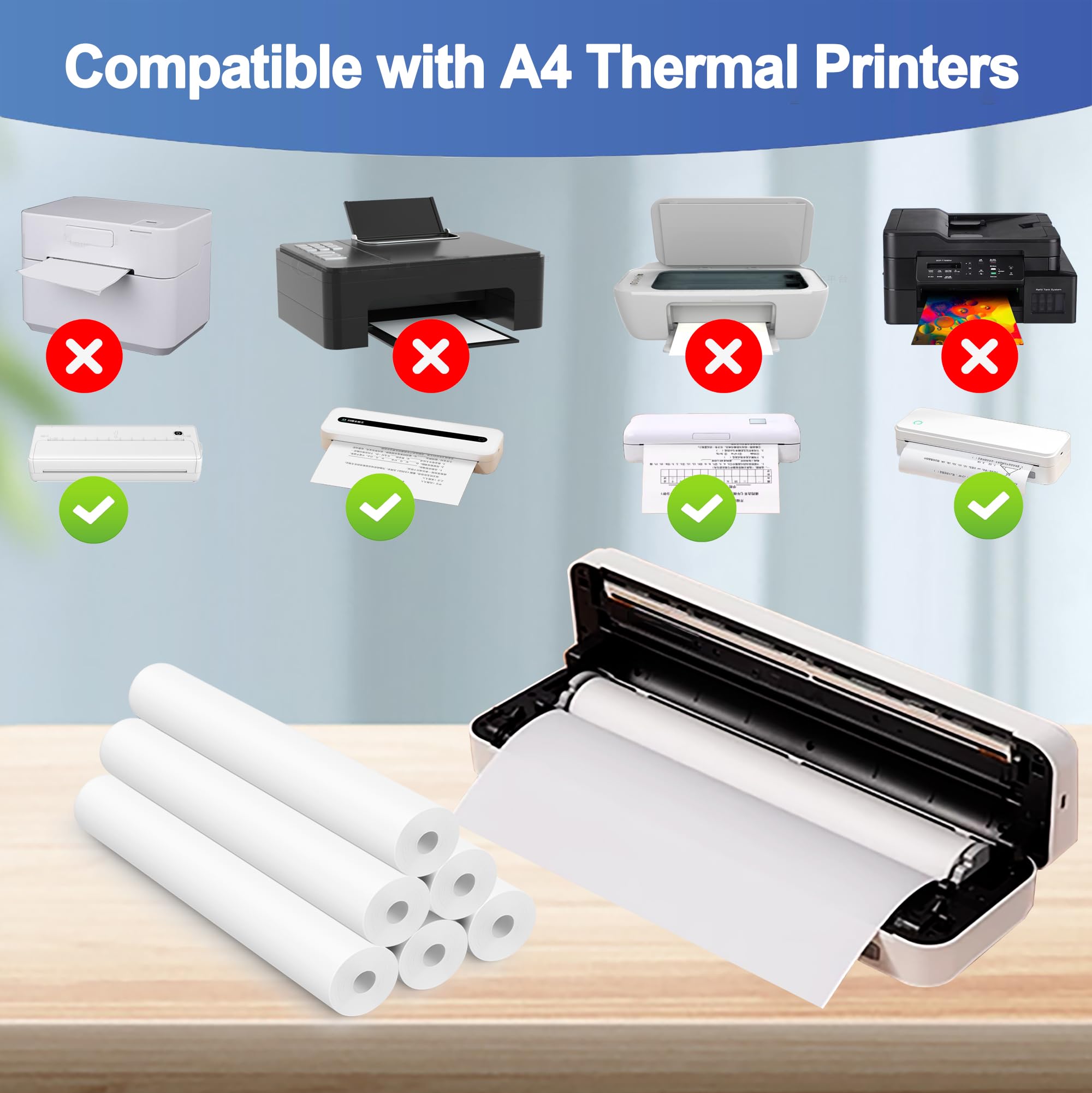 【Quantity & Size】Potanro thermal paper rolls The length of each roll is 8m, the width is 0.21m, which is equivalent to 27 sheets of A4 printing paper (8.3''x11''). We have 6 rolls in one parcel, which is equivalent to 162 sheets of A4 paper, plenty of quantity!