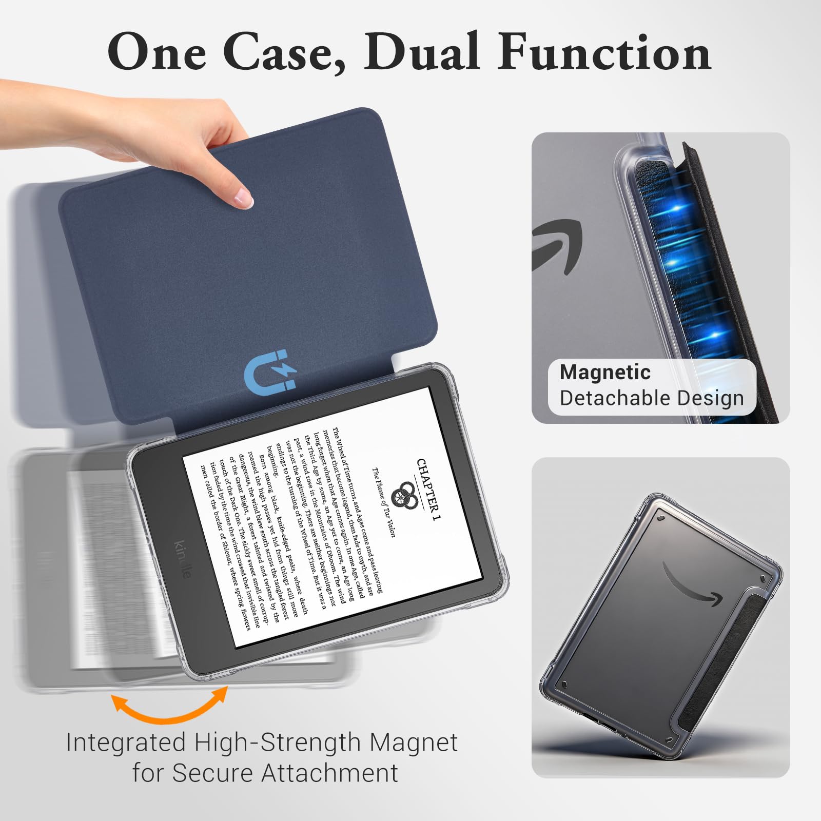 Detachable Magnetic Design — Built with strong magnets that securely attach the front cover to the clear back shell. Easily detach for lightweight, handheld reading—enjoy ultimate flexibility with just the slim, transparent back case when you’re on the go.