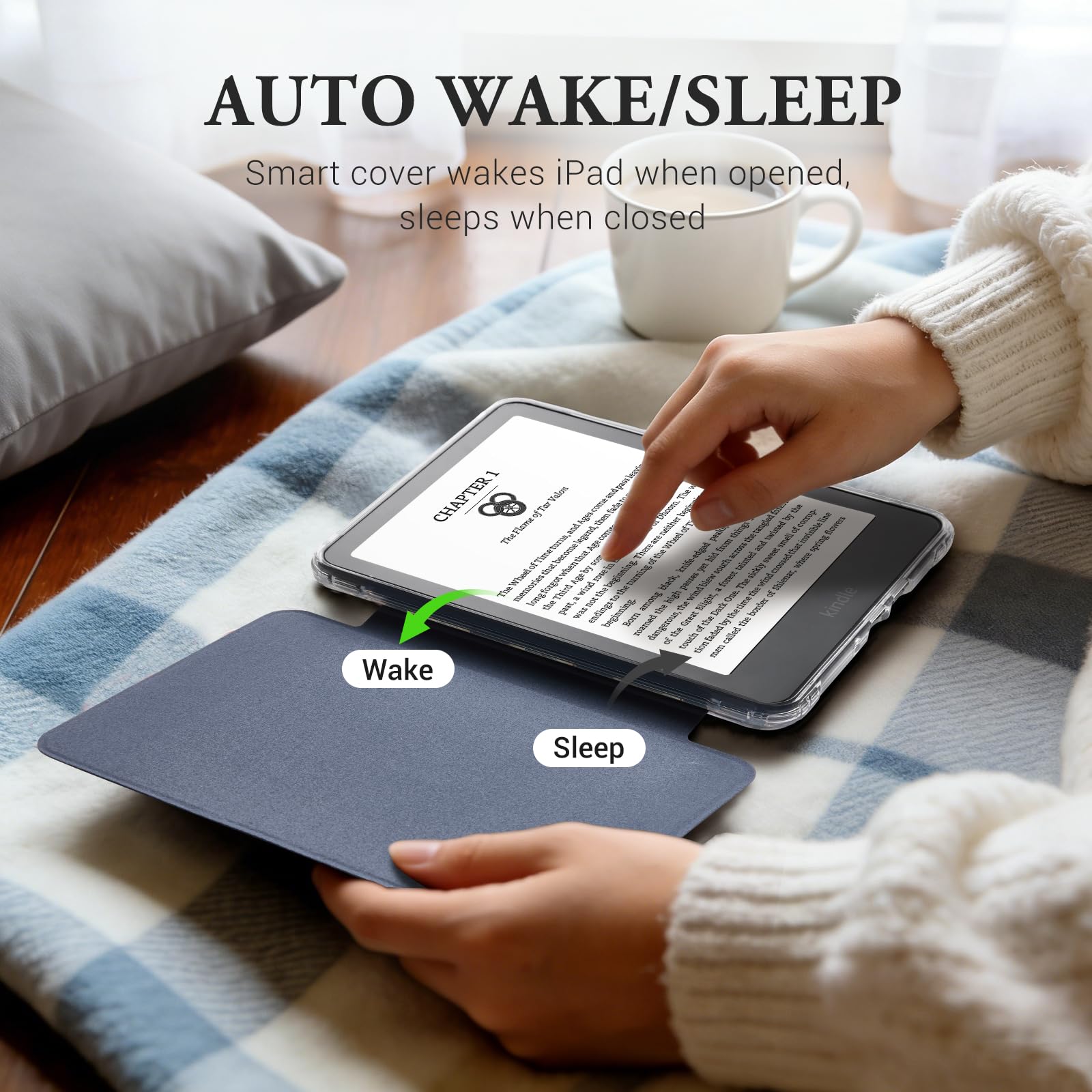 Smart Auto Wake/Sleep Function — The magnetic closure automatically wakes your device when opened and puts it to sleep when closed. This feature extends battery life and ensures your Kindle is always ready for your next reading session.