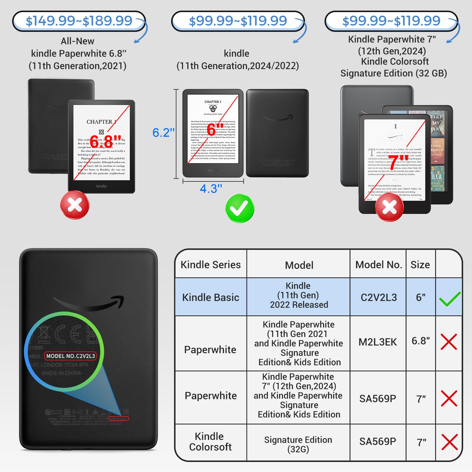 Precise Fit for All-New Kindle (11th Gen) — Custom-designed for the 6” All-New Kindle 11th Generation 2024 (Model RS23CV) and 2022 (Model C2V2L3) only. The precise cutouts and contoured shape ensure a perfect fit, allowing full access to all ports and buttons. (Not compatible with other Kindle models—please confirm before purchase.)