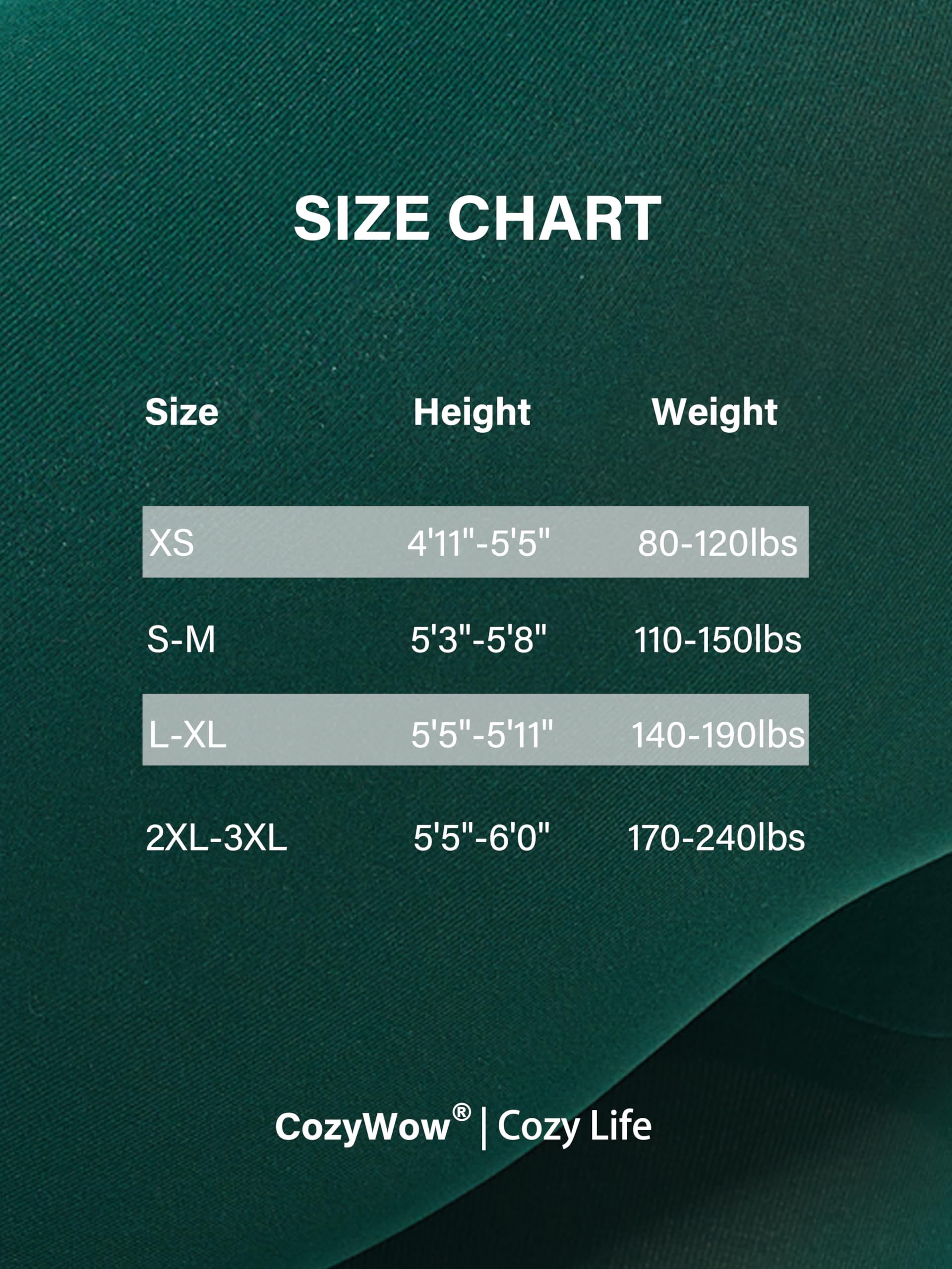Size Recommended:XS: Height 4'11"-5'5" , Weight 80-120lbs. S-M: Height 5'3"-5'8", Weight 110-150lbs. L-XL: Height 5'5"-5'11", Weight 140-190lbs. 2XL-3XL: Height 5'5"-6', Weight 170-240lbs. Our stockings' design ensure elegance and comfort for every body type.