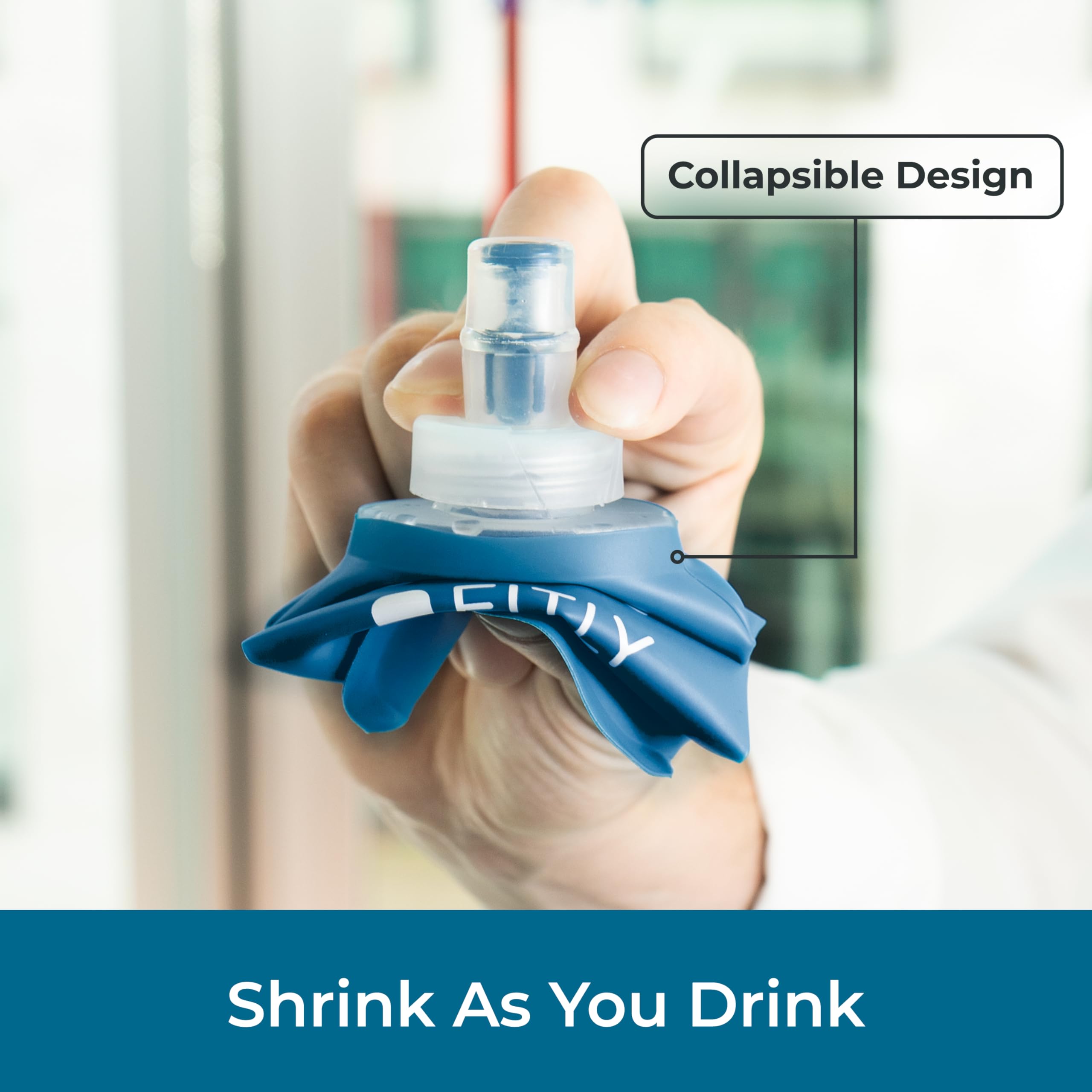 HYDRATION ON THE MOVE: Our collapsible running soft flask is a compact and eco-friendly way to stay hydrated on the move! The soft water bottle is the perfect hydration tool for active individuals. Our soft water bottles for runners shrink as you drink, taking up minimal space and won’t slosh around, making it perfect for running, hiking, skiing, or any rigorous activity. Now available in a Petrol Blue color option.