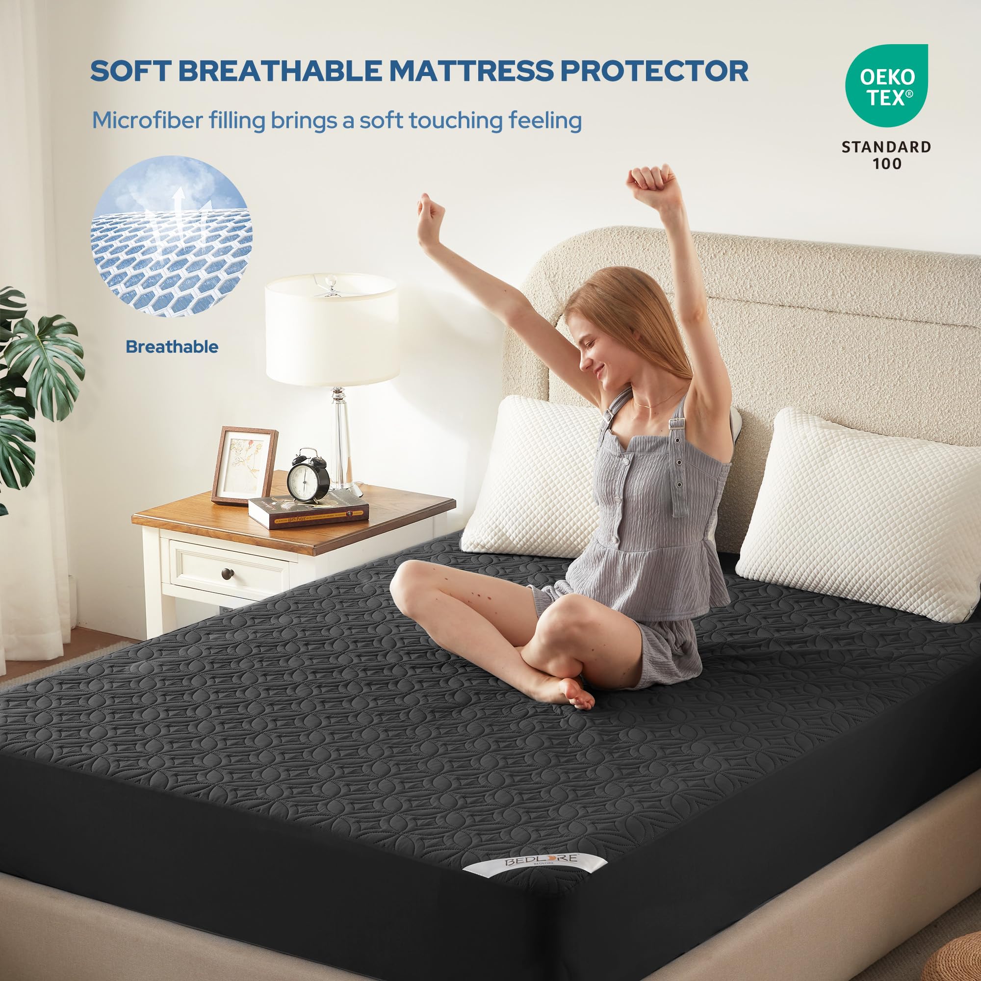 Ultra-Soft & Noiseless: Experience luxuriously soft, breathable comfort. The noiseless full mattress protector fabric ensures peaceful sleep, even when you move