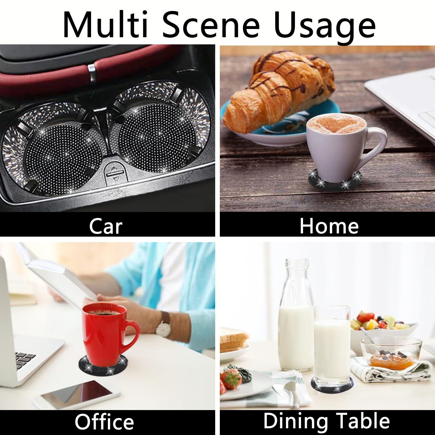 Buy with confidence: you will be provided with 2 pcs silicone crystal car coasters. If something ever happens to the product, we'll replace it for you for free! Or send you an immediate full money back. Please rest assured to buy.