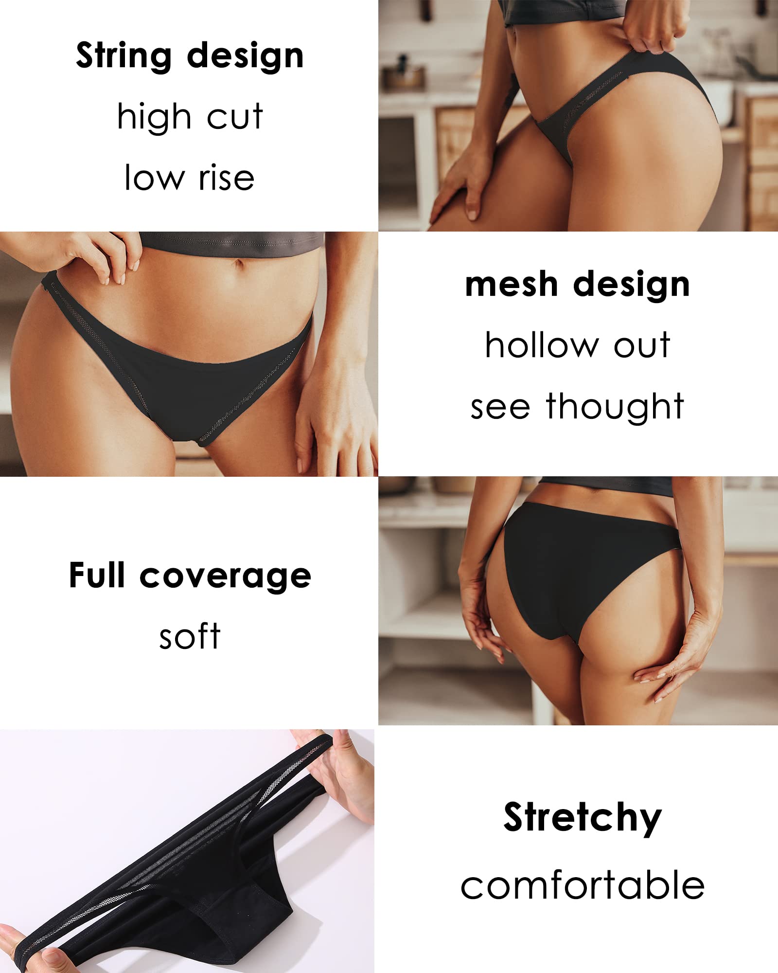 String Bikini Panties: The string and Hollew Out Mesh design combines the comfort of the bikini cut with a stylish touch on the sides. Discover a highly versatile and comfy option of any occasion that comes with everything you need on a pair of panties. It strikes the perfect balance of comfort and stretchiness.